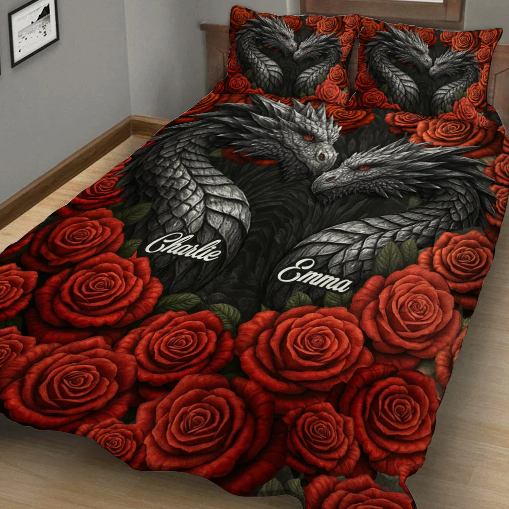 Dragon Rose Couple Bedding Set, Couple Valentine Gift, Personalized Valentines Gift, Couple Anniversary Gift