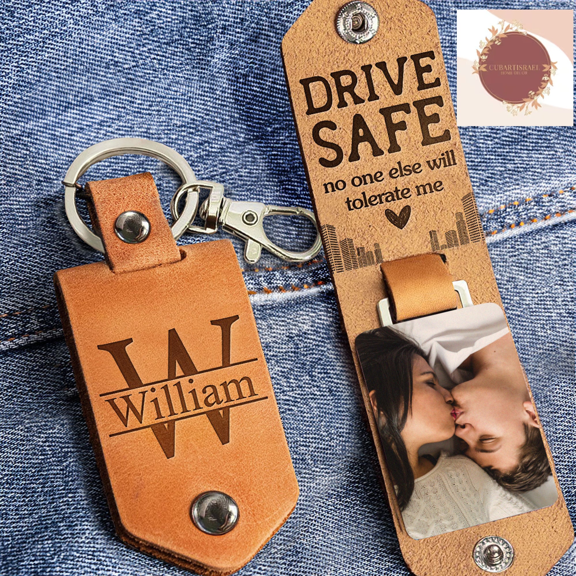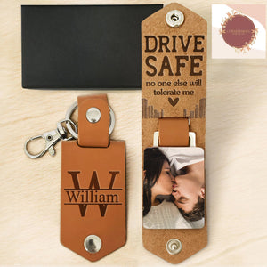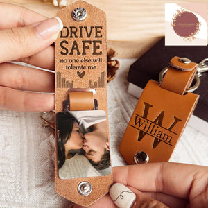 Drive Safe No One Else Will Tolerate Me Personalized Photo Leather Keychain, Gift for Couple
