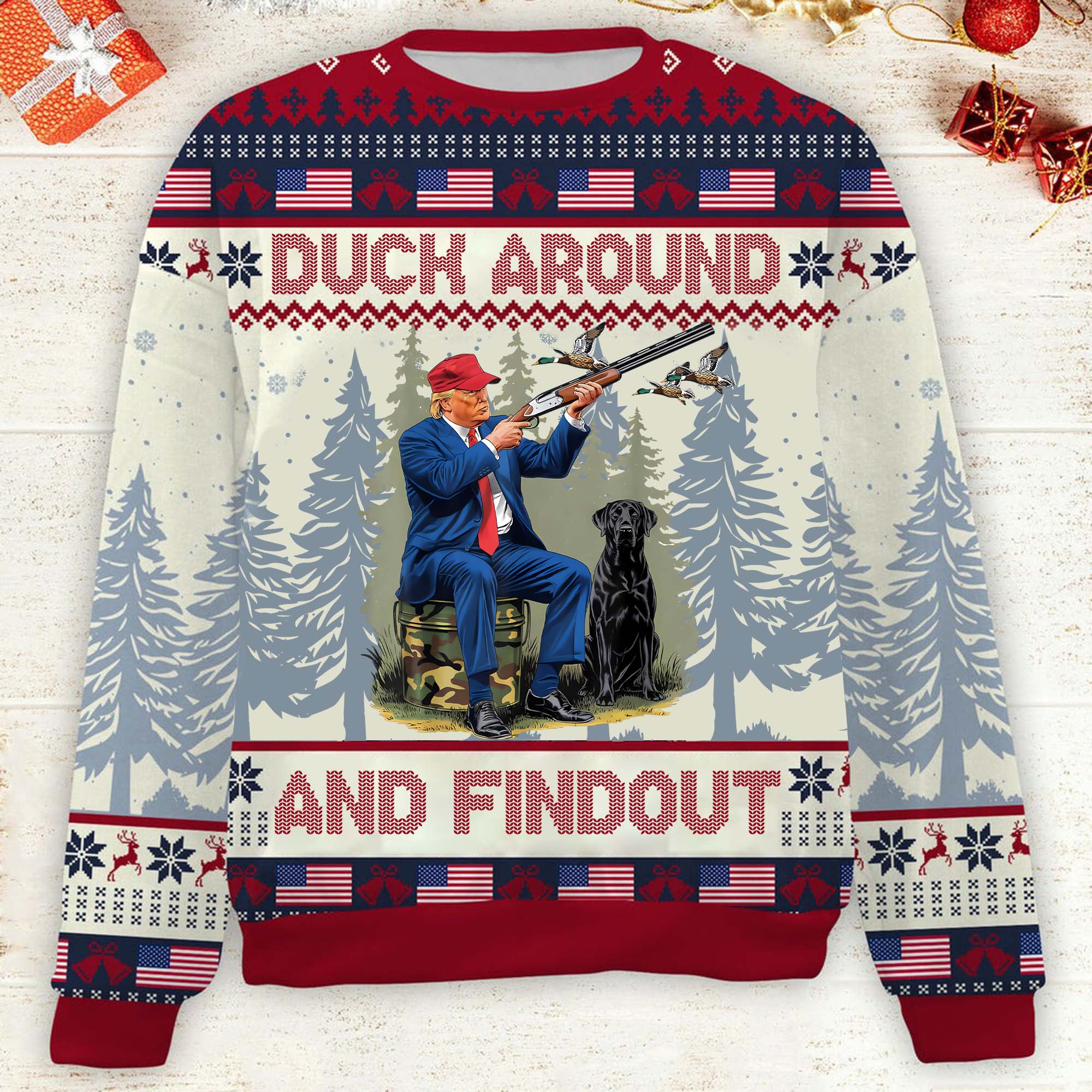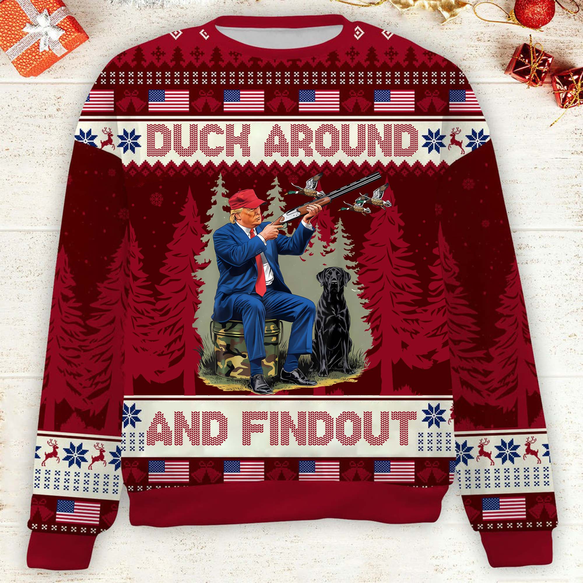 Duck Around And Findout Funny Humorous Trump2024 Christmas Ugly Sweater, Funny Political Shirts