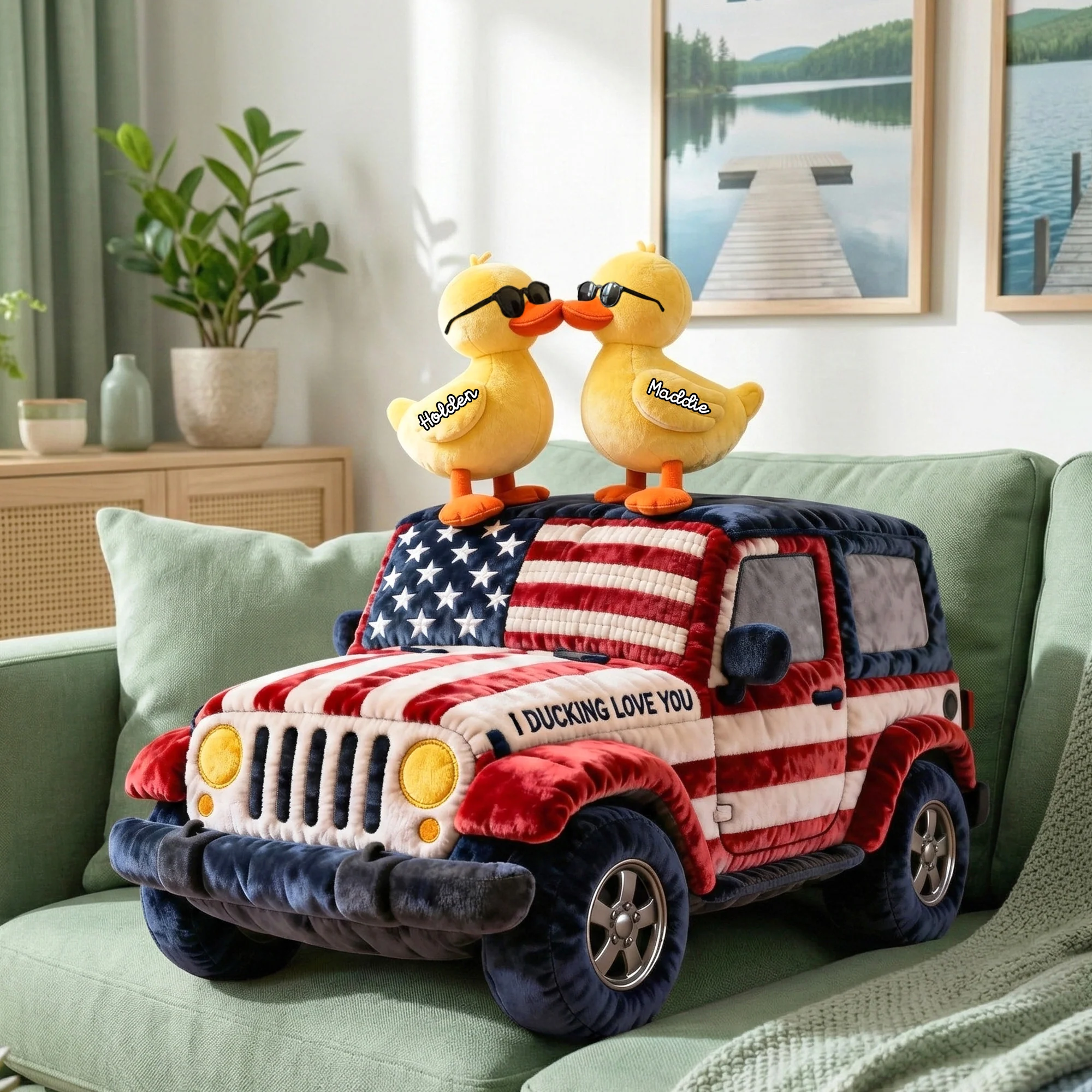Duck Couple I Ducking Love You American Flag Car Custom Shaped Pillow, Couple Valentine Gift
