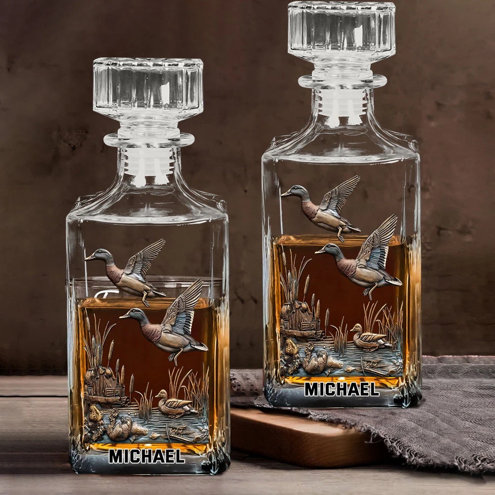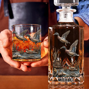Duck Hunting Whiskey Decanter Set, Luxury Whiskey Glass, American Glassware, Hunting Gift