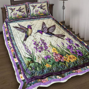 Hummingbird Couple Quilt Bed Set – Romantic & Cozy Bedding for Bird Lovers