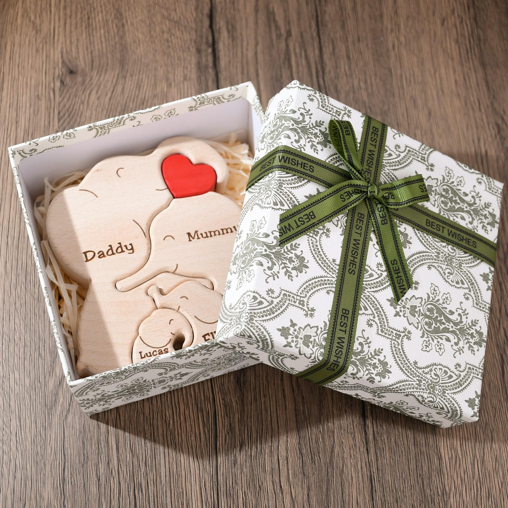 Elephant Family Custom Engraved Wooden Puzzle – A Heartfelt Gift for Any Occasion