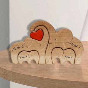Elephant Family Customize Engraved Wooden Puzzle, Mother's Day Gift, Father Day's Gift, Family Puzzle, Home Decor