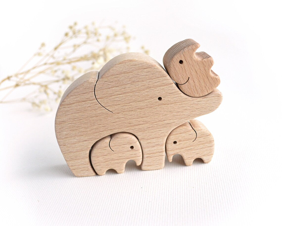 Elephant Family Personalize Engraved Wooden Puzzle, Family Puzzle, Mother's Day Gift, Family Gift Idea