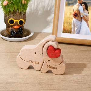 Elephant Family Personalize Engraved Wooden Puzzle, Mother's Day Gift, Father's Day Gift, Home Decor