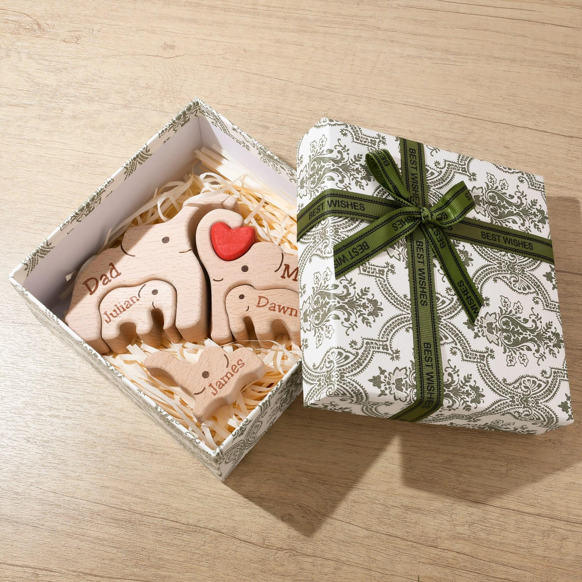 Elephant Family Custom Engraved Wooden Puzzle – A Heartfelt Gift for Any Occasion