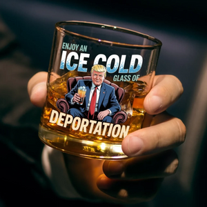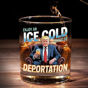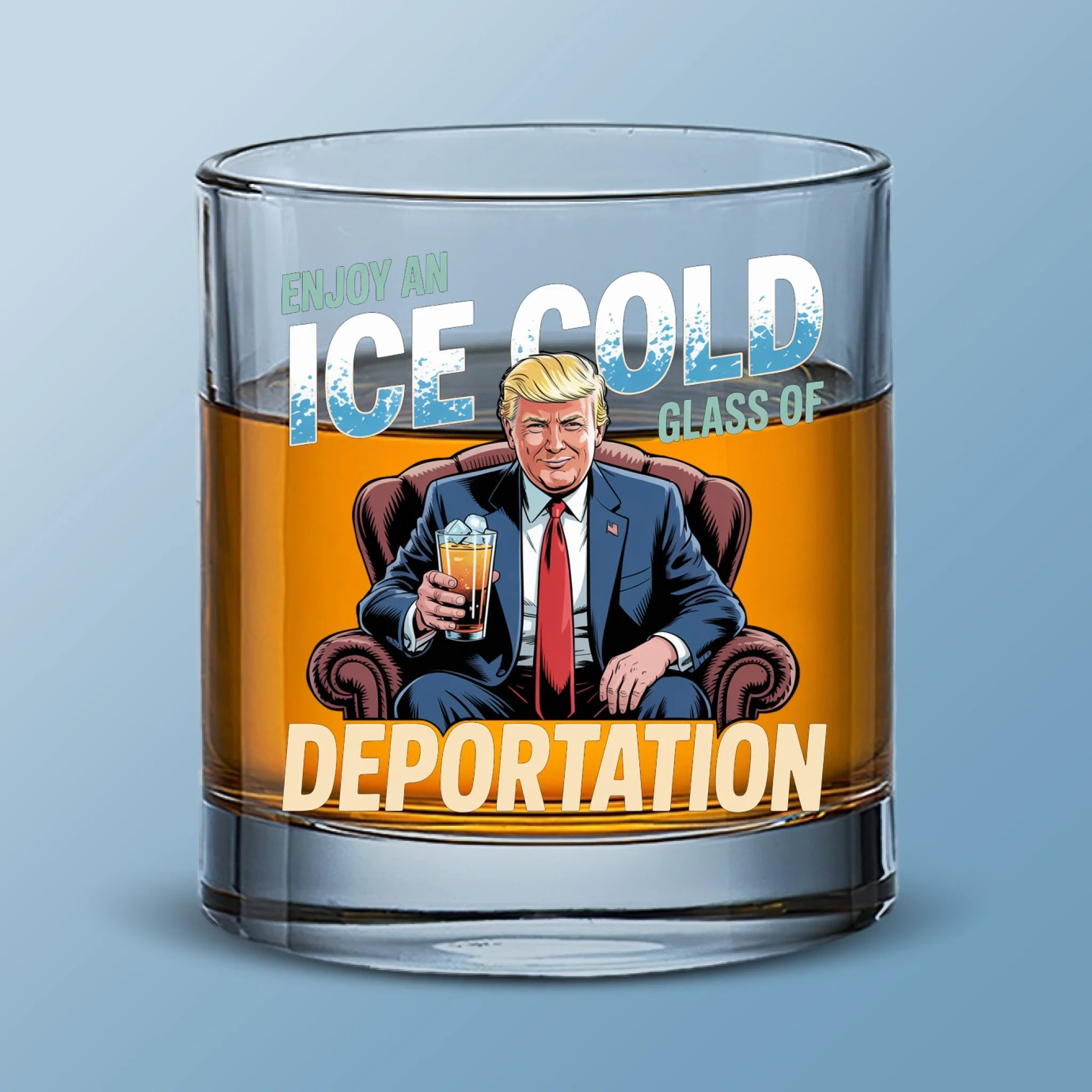 Enjoy An Ice Cold Glass Of Deportation Trump US Patriotic Whiskey Glass, Bold Moves Unique Whiskey Glass