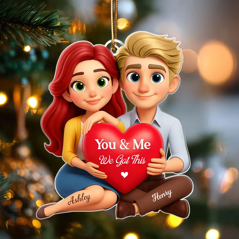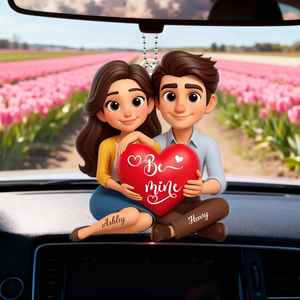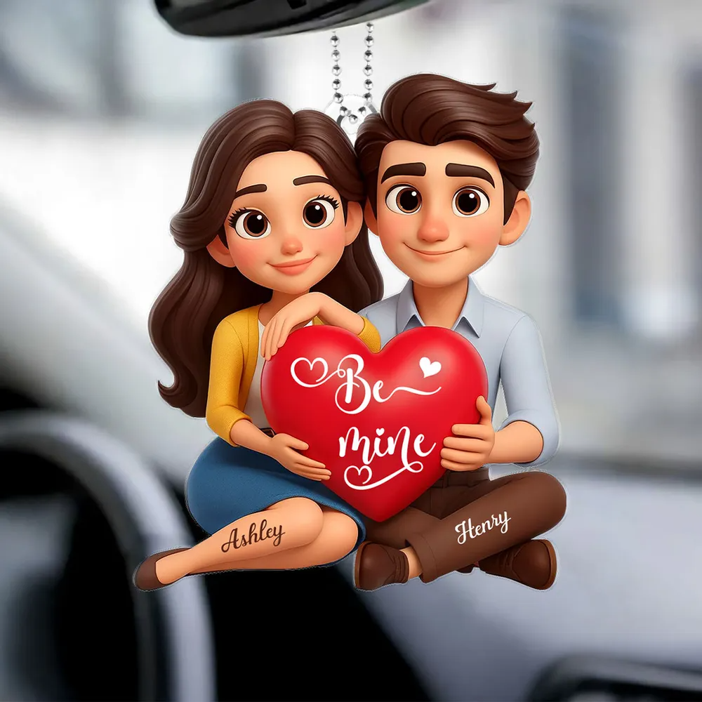 Eternal Love Cartoon Couple Sitting Acrylic Keychain, Personalized Valentines Gift, Couple Anniversary Gift