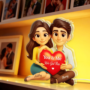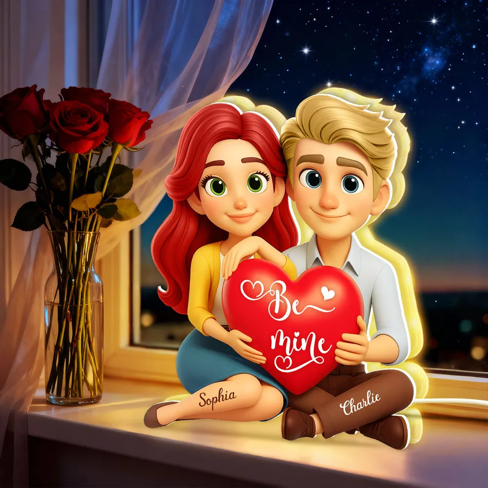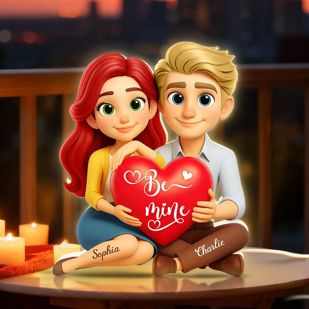Eternal Love Cartoon Couple Sitting Custom Light Box, Personalized Valentines Gift, Couple Anniversary Gift