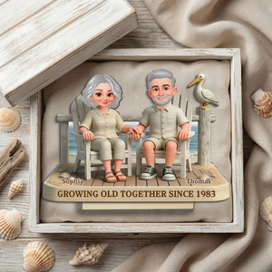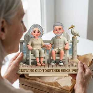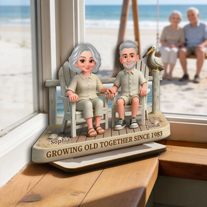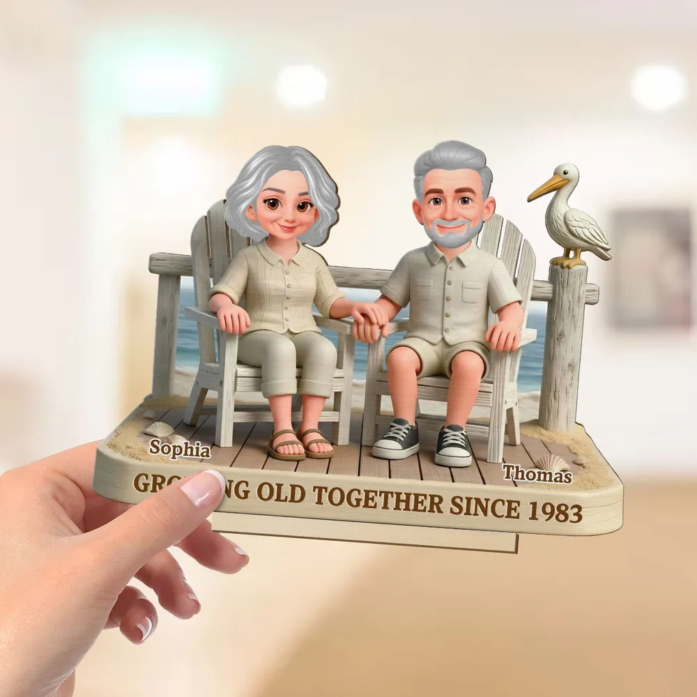 Eternal Love Couple On The Beach Growing Old Together 2-Layer Wooden Plaque, Personalized Valentines Gift