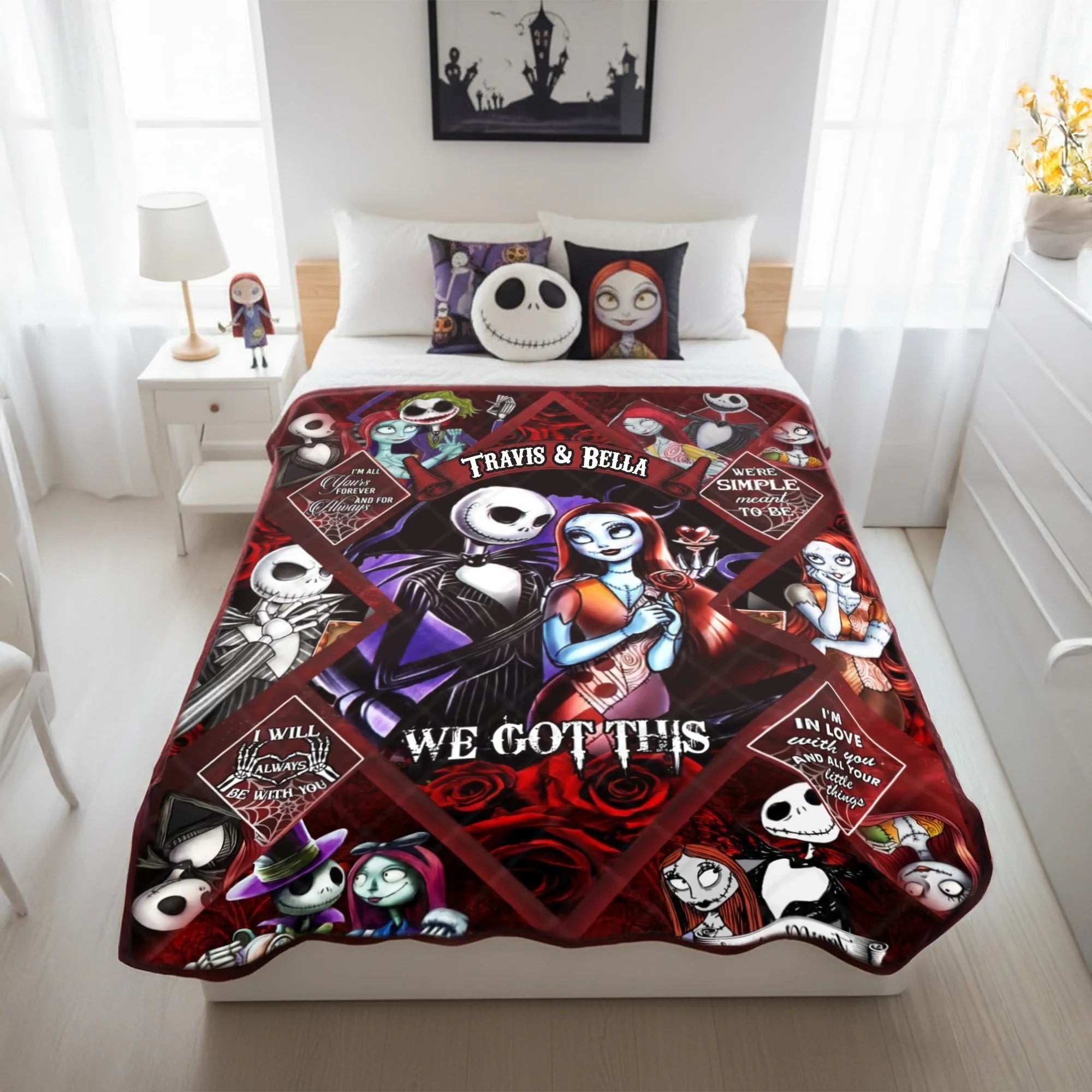 Eternal Love Skull Couple Blanket, Personalized Sherpa Blanket, Bedroom Decor