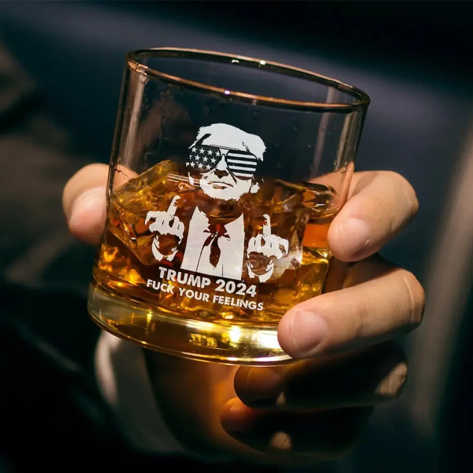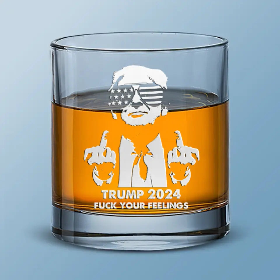 F Your Feelings Whiskey Glass, Trump2024 Printing Glassware, Gift For Trump Supporters