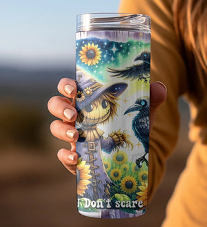 You Don't Scare Me - Fall Scarecrow 20oz 30oz Tumbler,, Funny Flannels Purple Teal Leaves Tumbler, Halloween Gifts