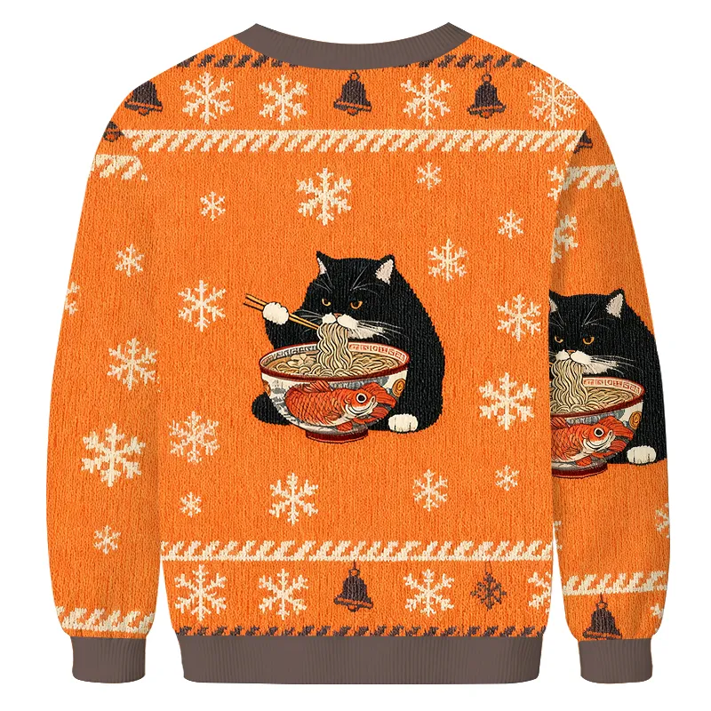 Fat Cat Eating Ramen Vintage Christmas Sweater, Ugly Xmas Sweater, Christmas Ugly Sweatshirt