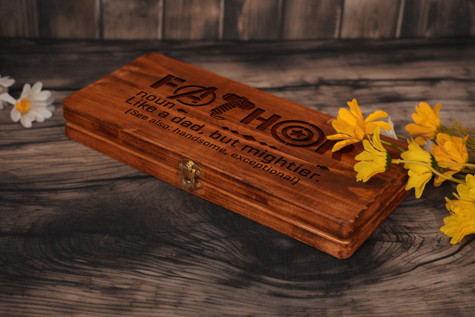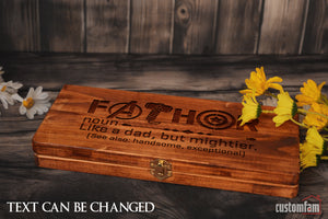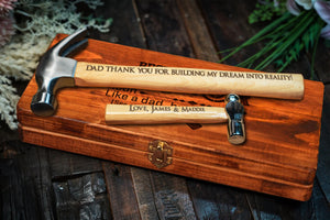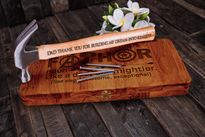 Fathor Like A Dad But Mightier Personalised Engraved Hammer Gift Set with Wooden Box and Nails, Framing Hammer, Gifts For Dad