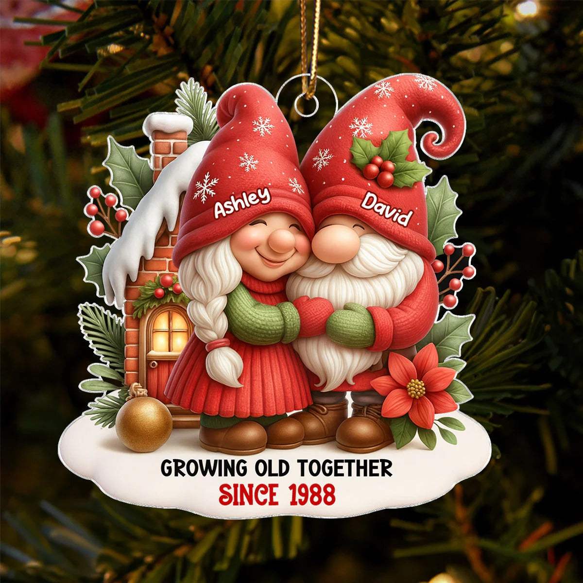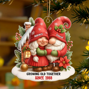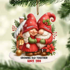 Festive Gnome Couple Love In Winter Wonderland Personalized Acrylic Ornament