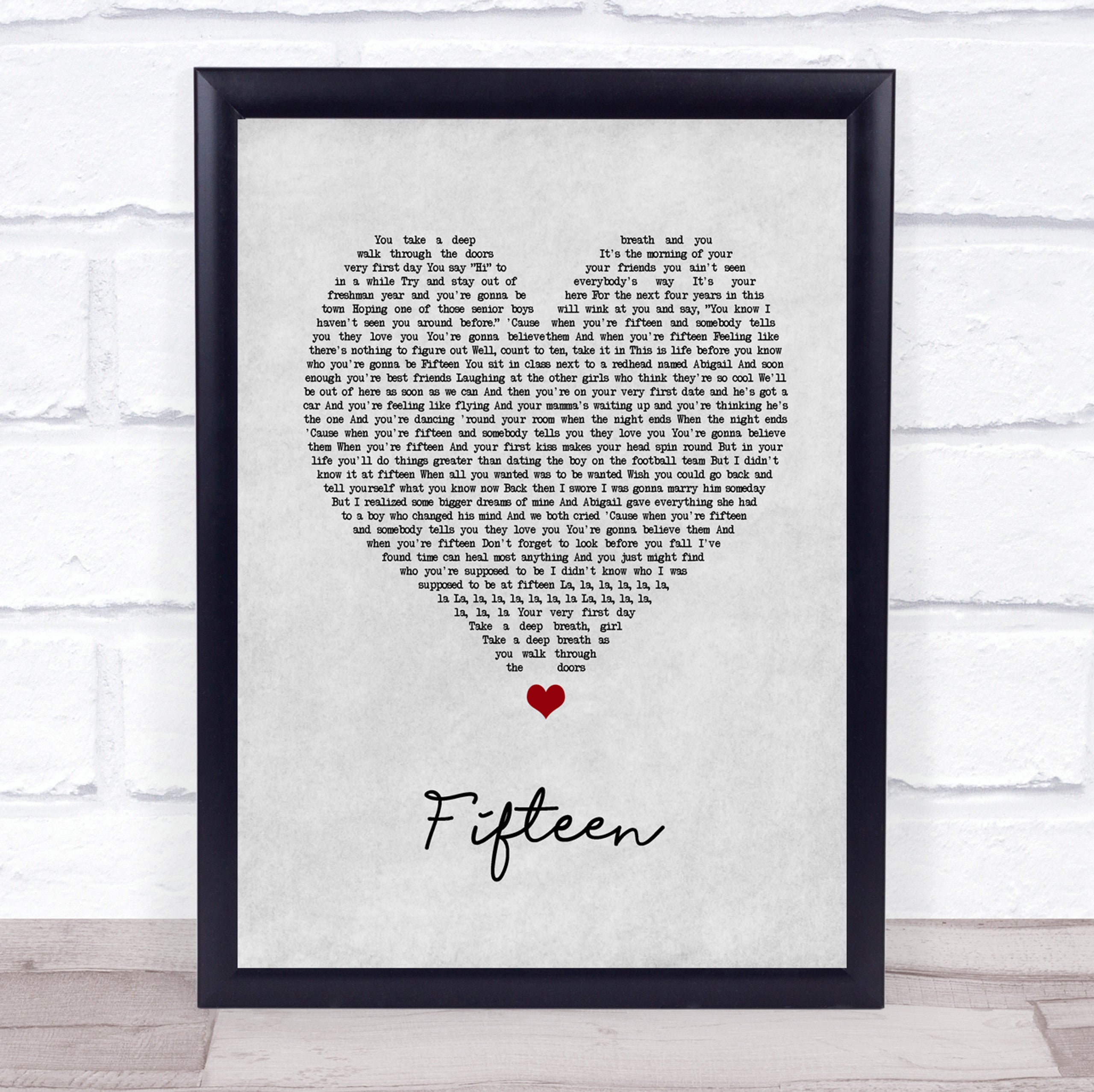 Fifteen Canvas Wall Art With Song Lyrics, Grey Heart Song Lyric Music Canvas, Gift For Swifties