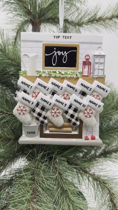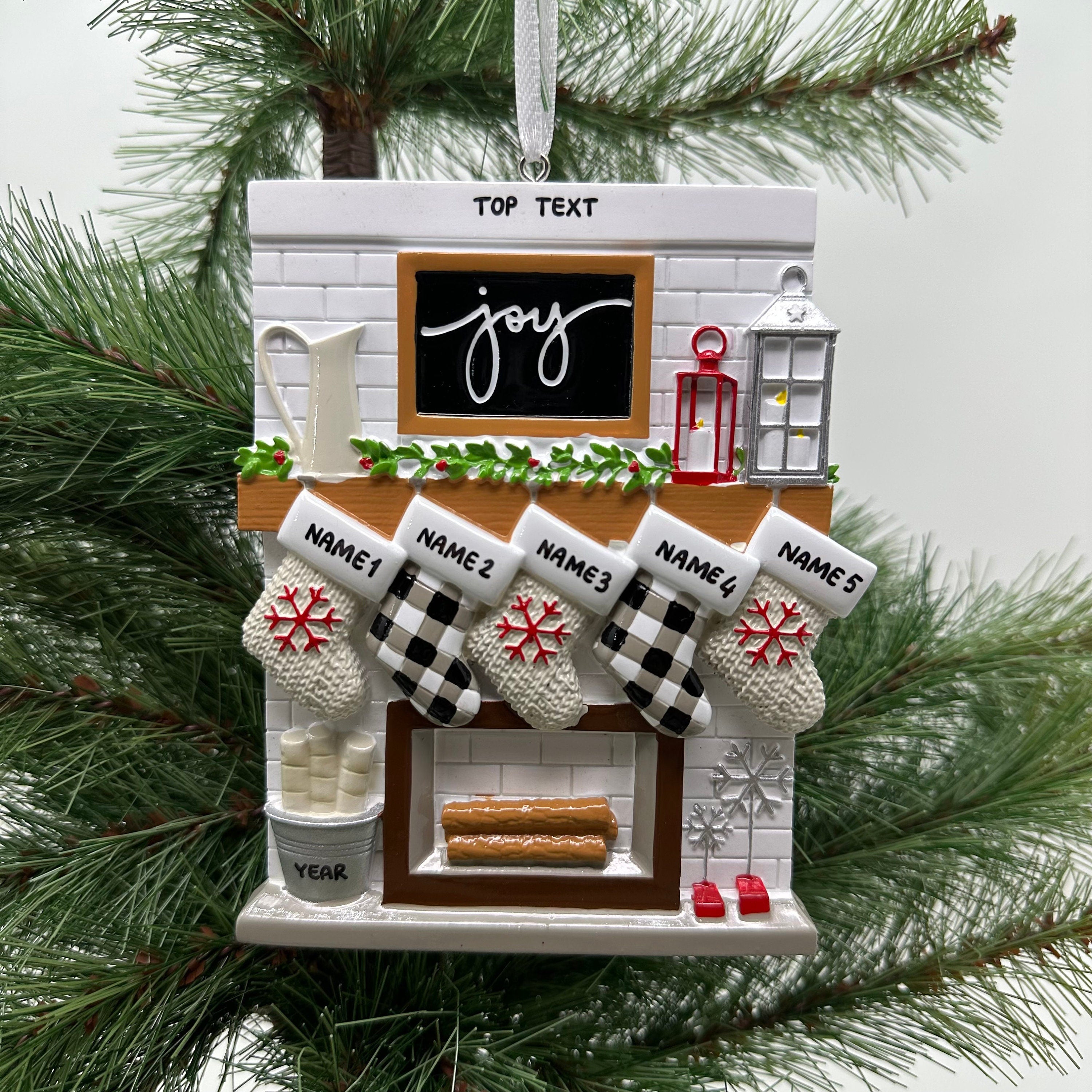 Fireplace Mantel Family Stocking Joy Ornament, Personalized Christmas Gift