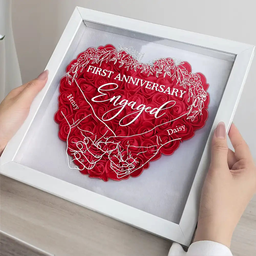First Anniversary Personalized Flower Shadow Box, Valentine Gift For Couple