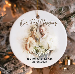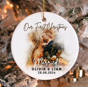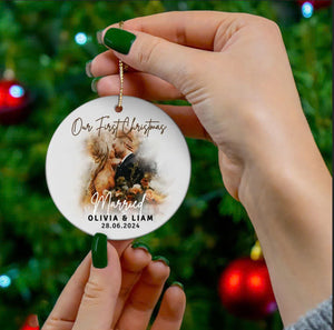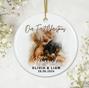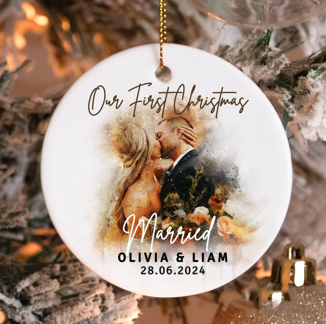 First Christmas Married Ceramic Ornament, Personalized Wedding Gifts