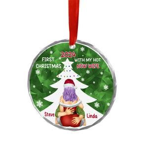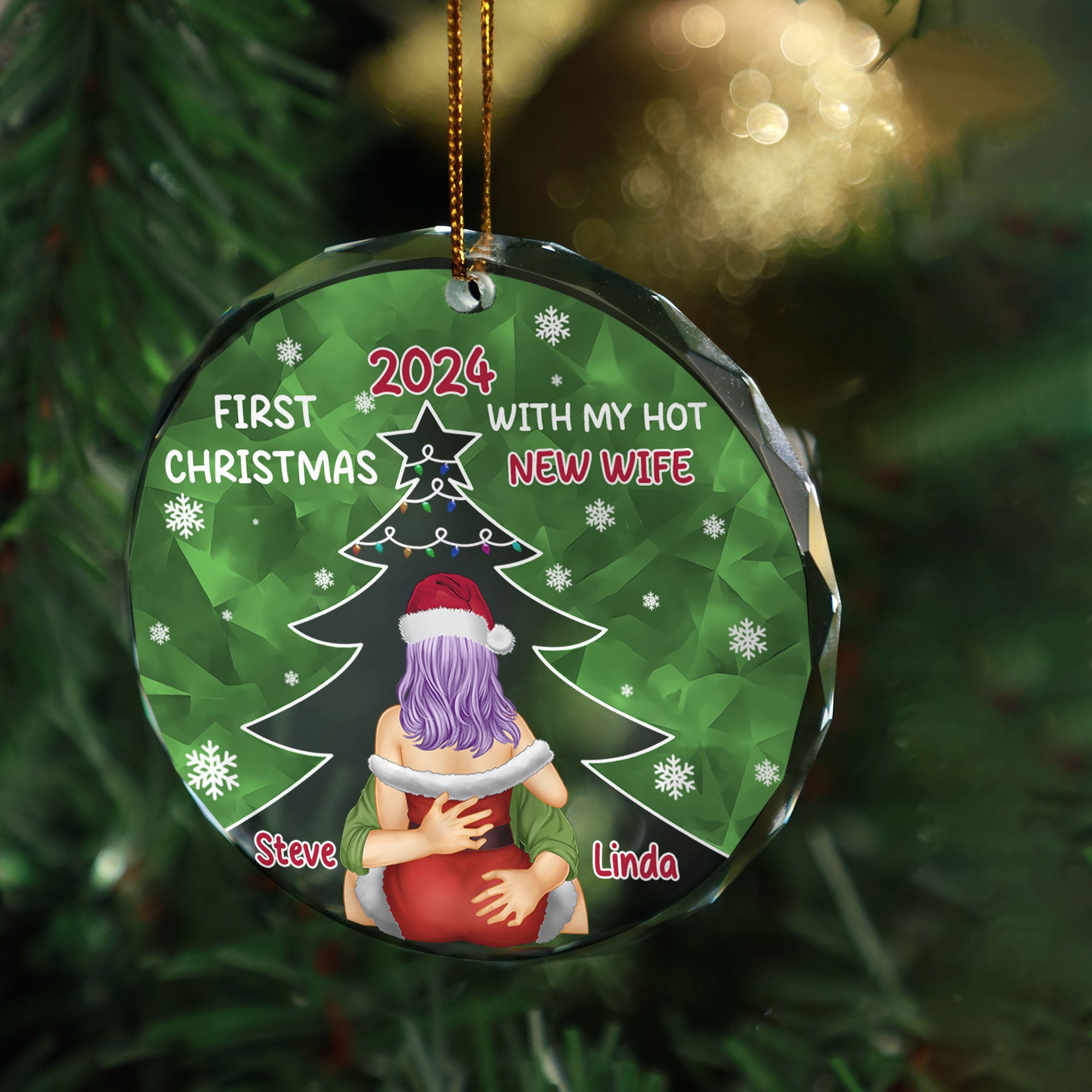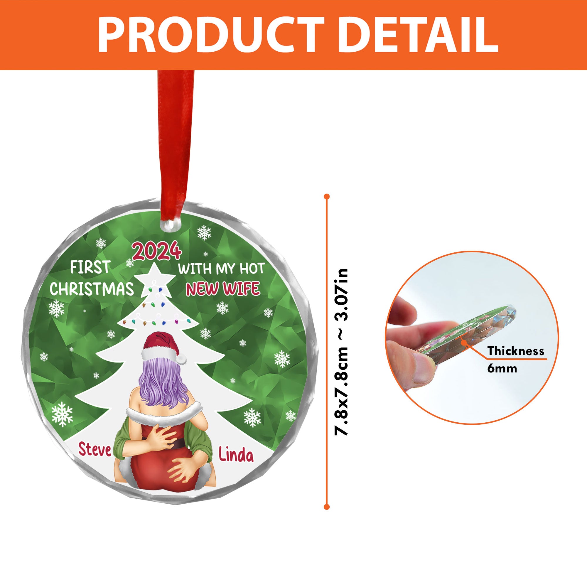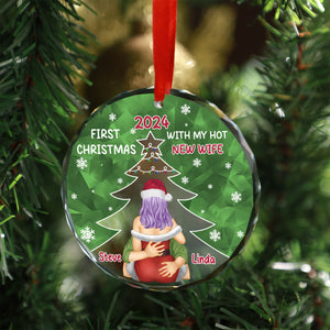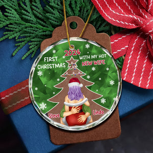 First Christmas With My Hot New Wife Naughty Couple Glass Ornament, Gift For Couple