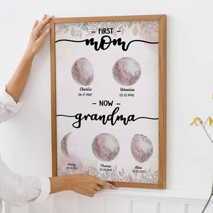 First Mom Now Grandma Custom Canvas Wall Art, Birth Moon Phase, Gift For Mom