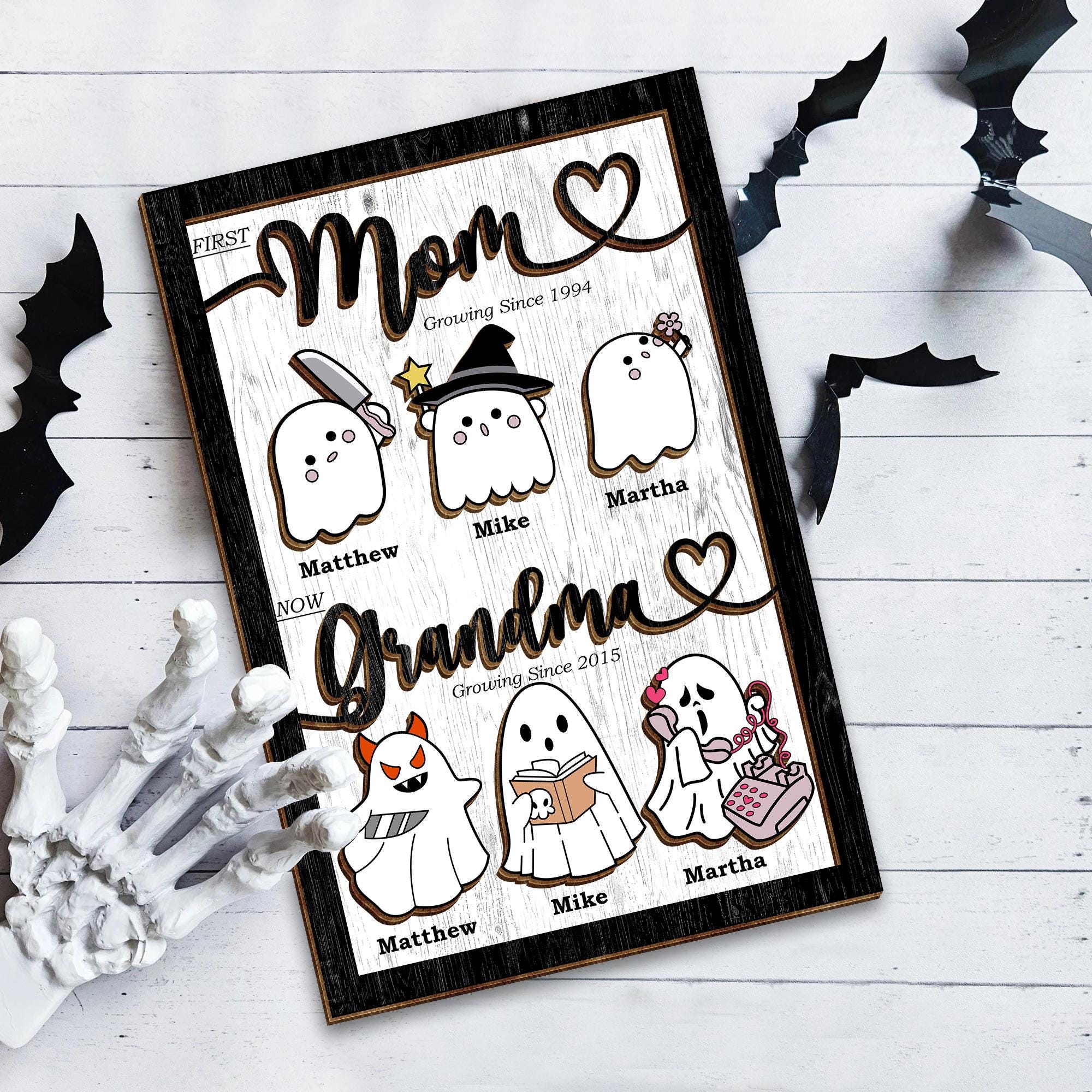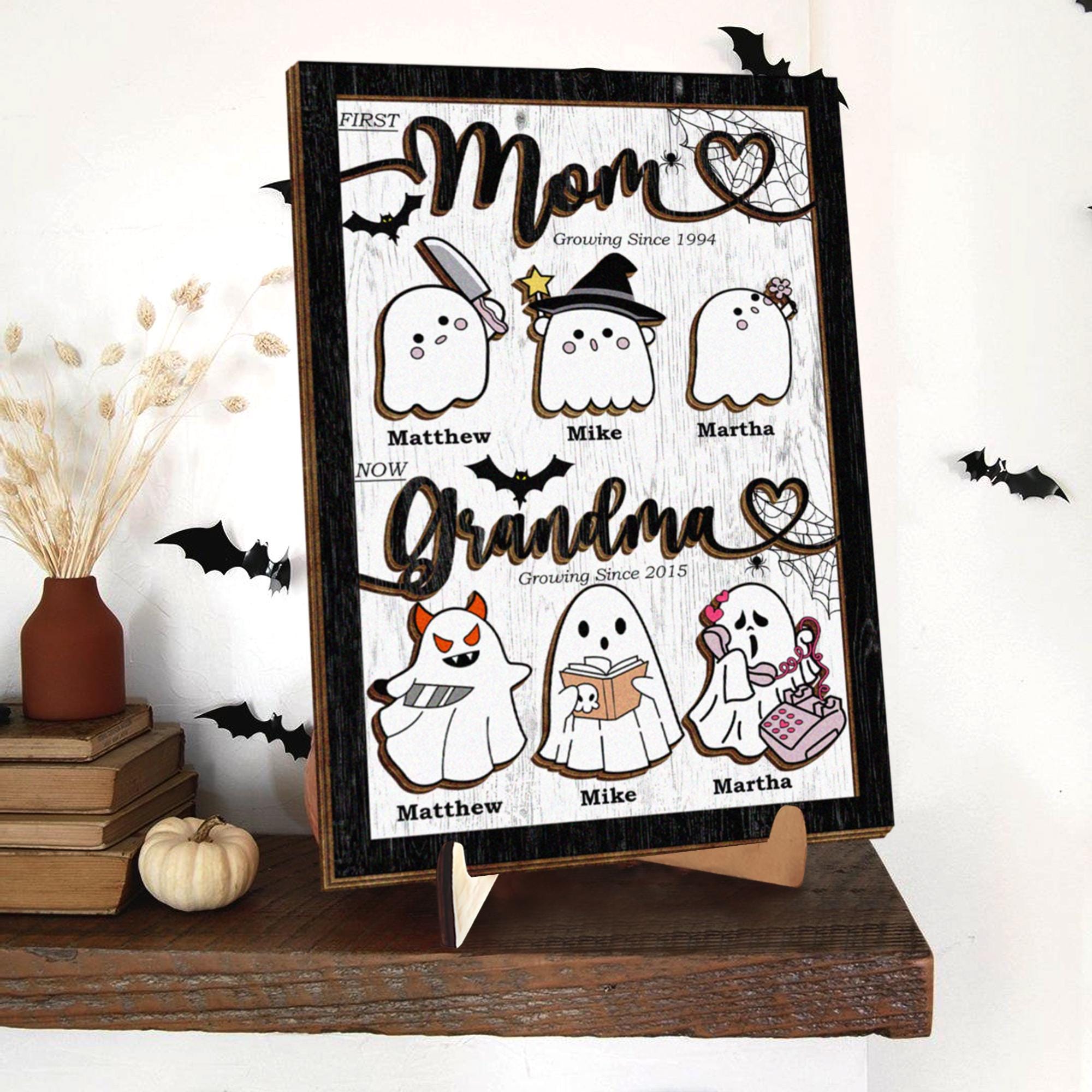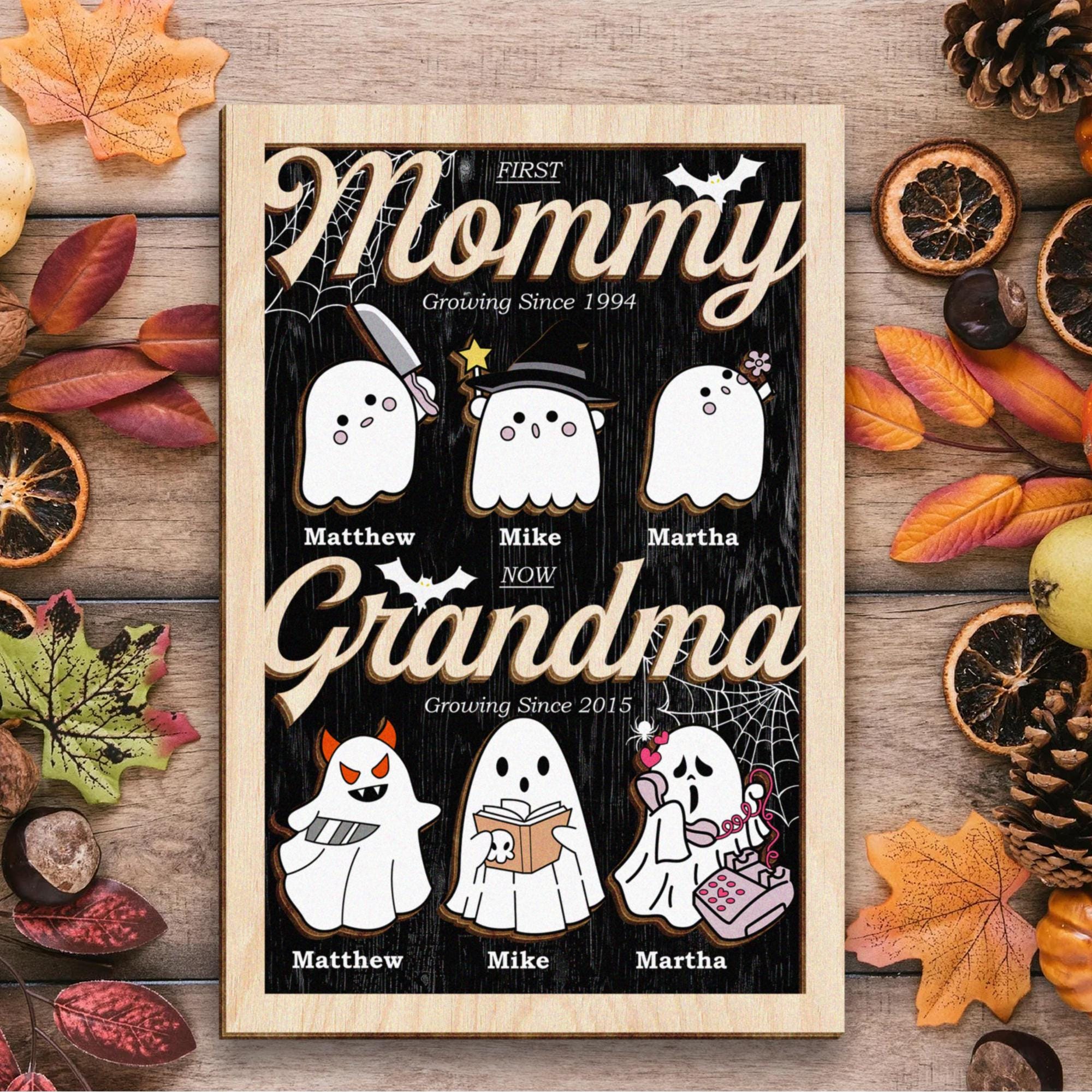 First Mom Now Grandma Personalized Halloween Wooden Sign, Cute Spooky Ghosts, Halloween Decor