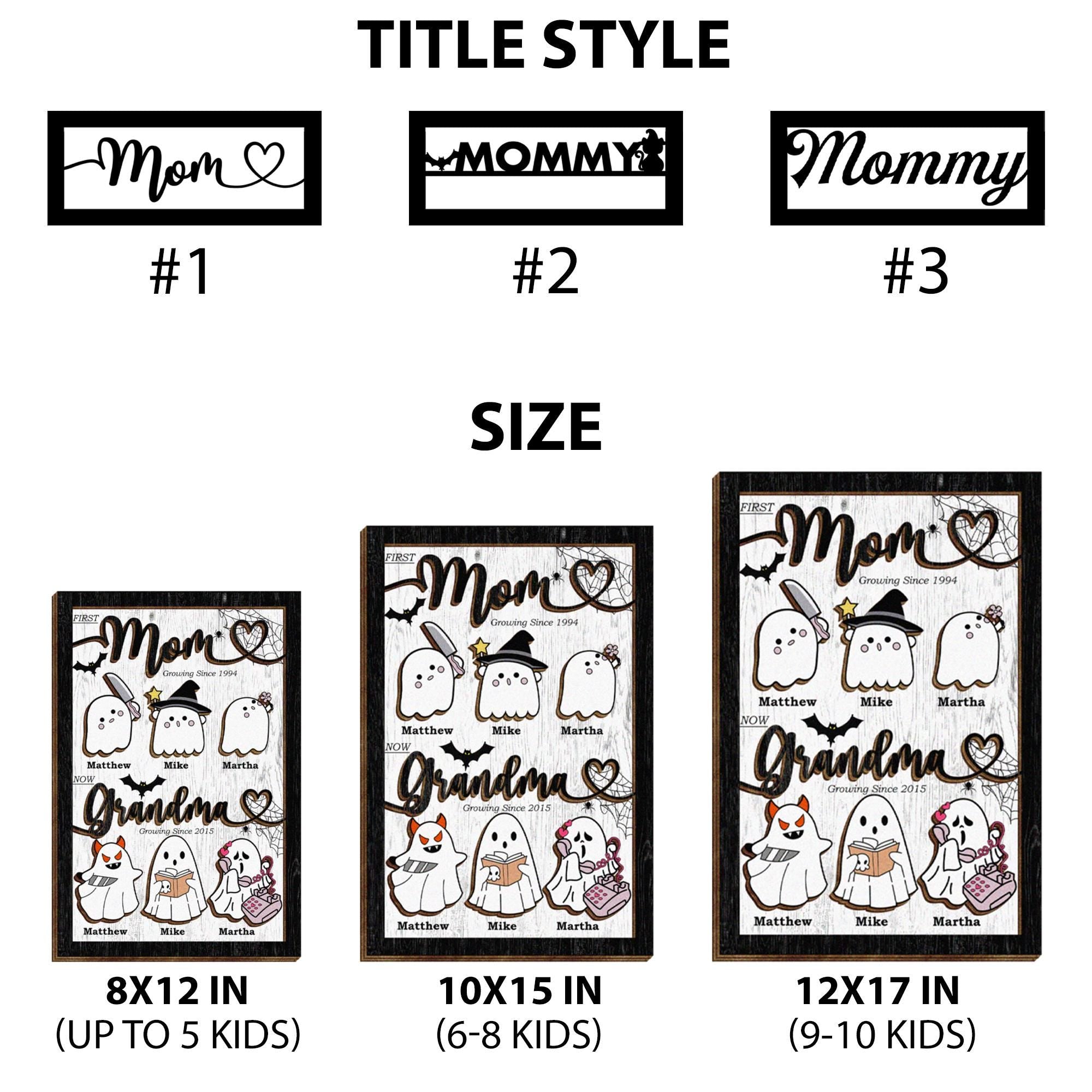 Charming Ghost Design: The sign features cute, friendly ghost characters, symbolizing the transition from Mom to Grandma in a fun and whimsical way. Each ghost can be customized with the names of her children and grandchildren, making it a truly special keepsake.