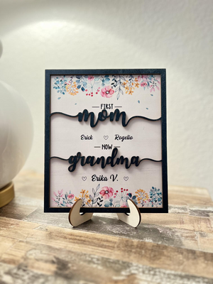 Celebrate the beautiful transition from "First Mom" to "Now Grandma" with our charming 2-Layered Wooden Plaque. This thoughtful and heartfelt piece makes a perfect gift for any mom who’s become a grandma, making it an ideal choice for Mother’s Day, birthdays, or simply as a special surprise. With its rustic design and warm sentiment, this sign adds a personal touch to any home or garden. Let her proudly display this unique keepsake and cherish the memories for years to come.