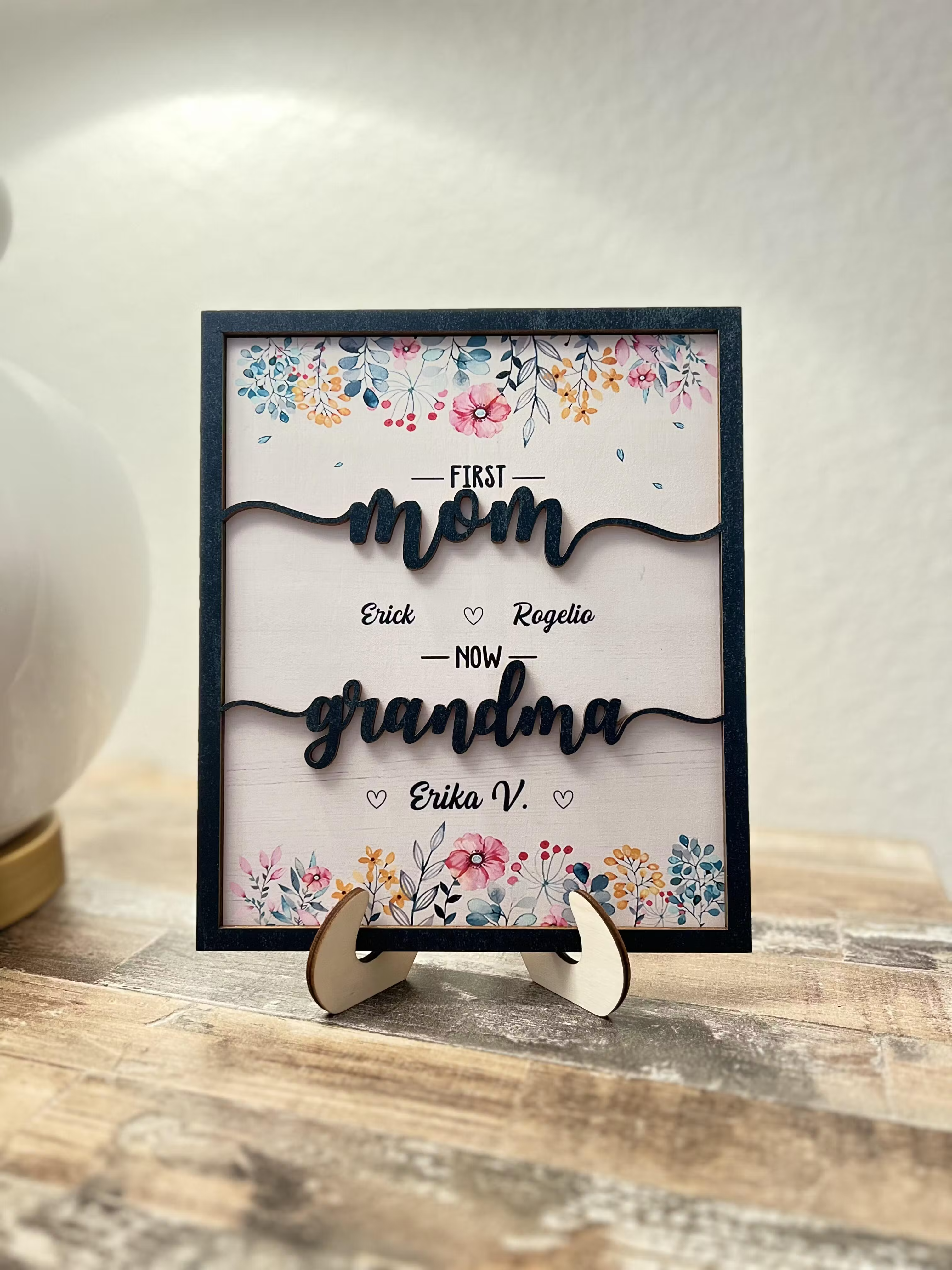 First Mom Now Grandma Wood Sign, Mom Garden 2-Layered Wooden Plaque, Mom Birthday Gift, Mothers Day Presents
