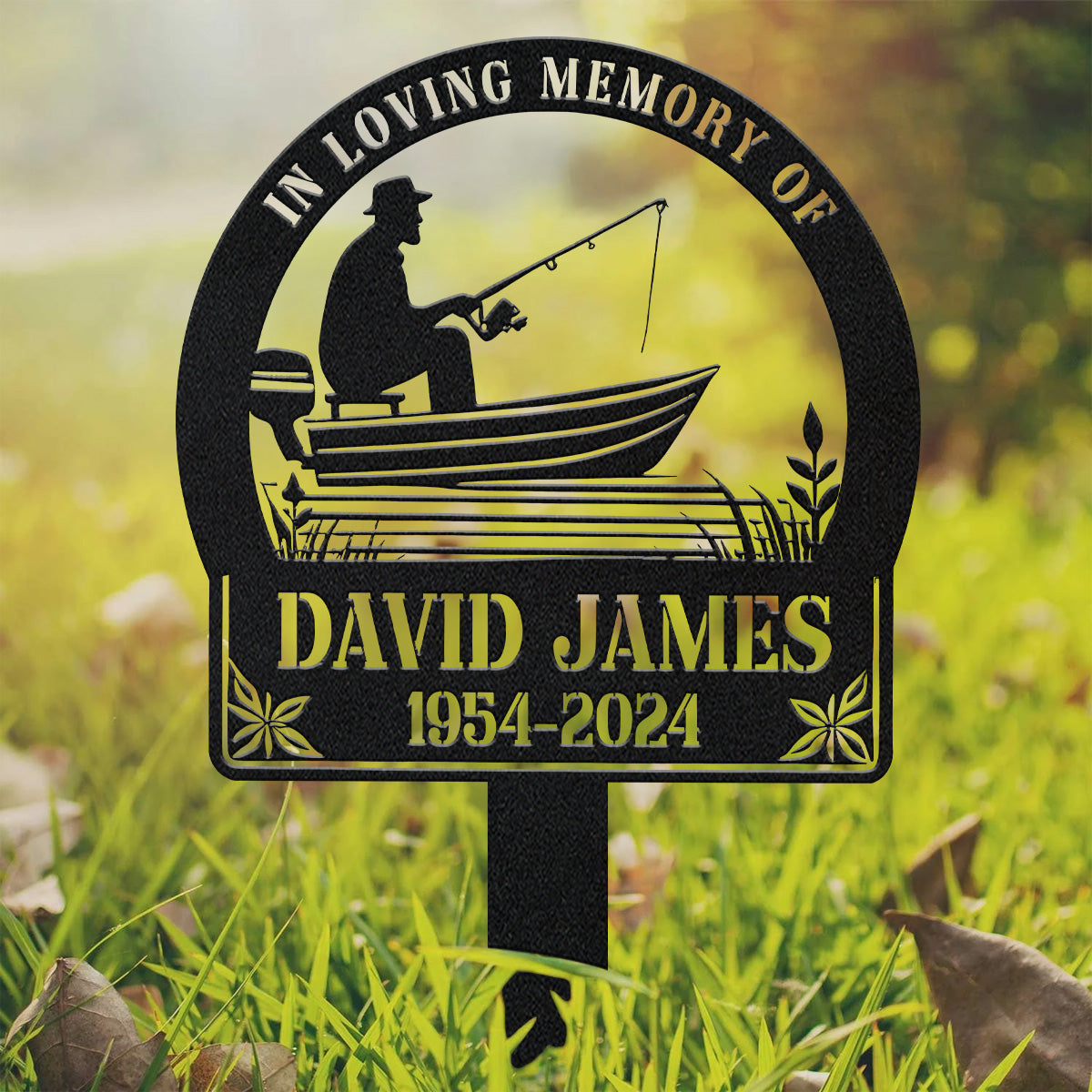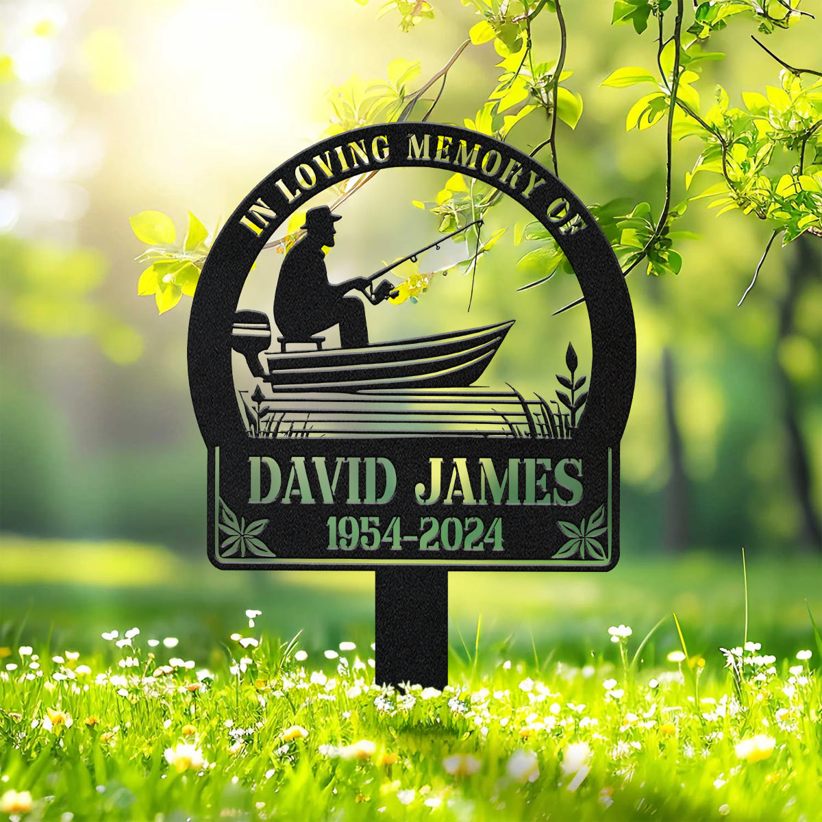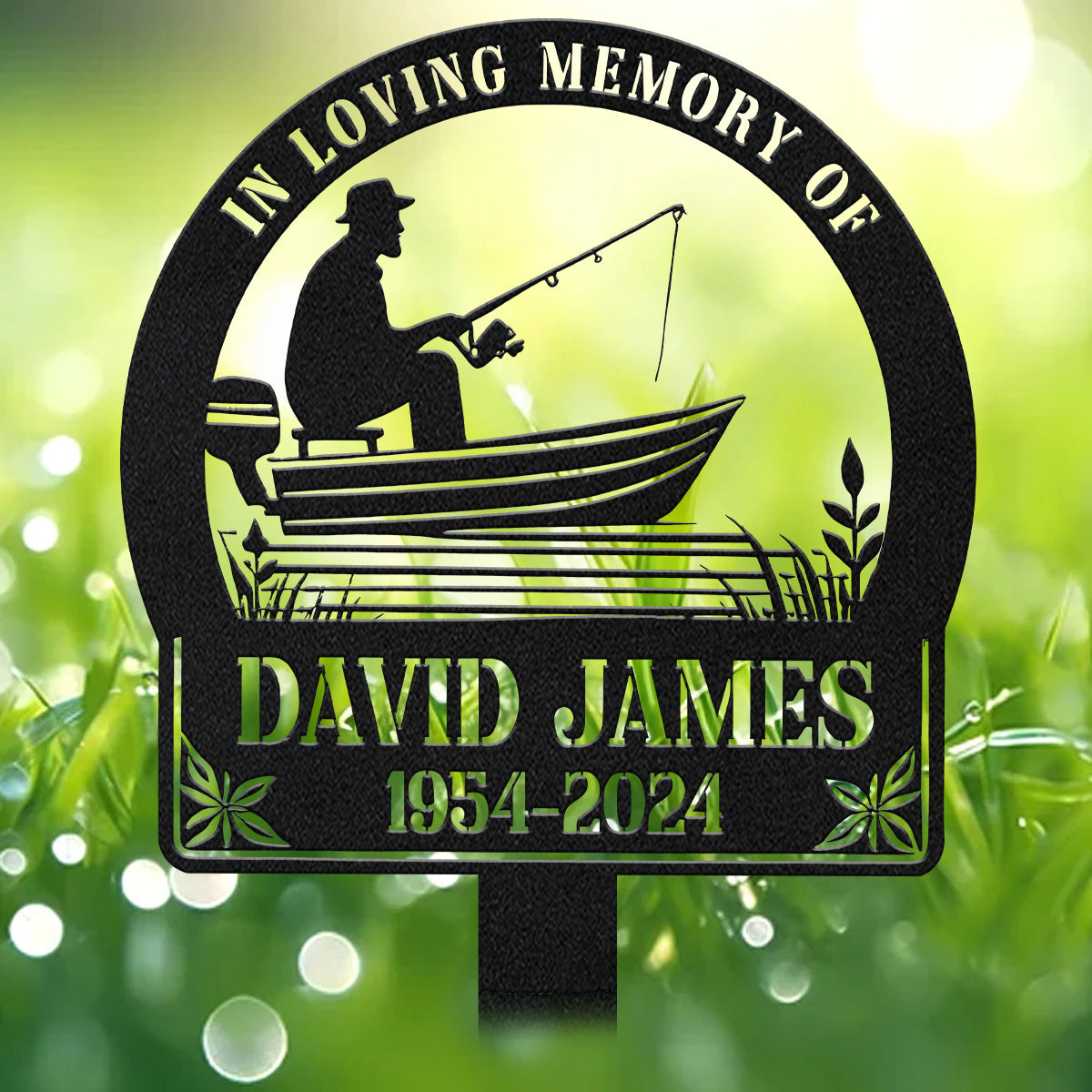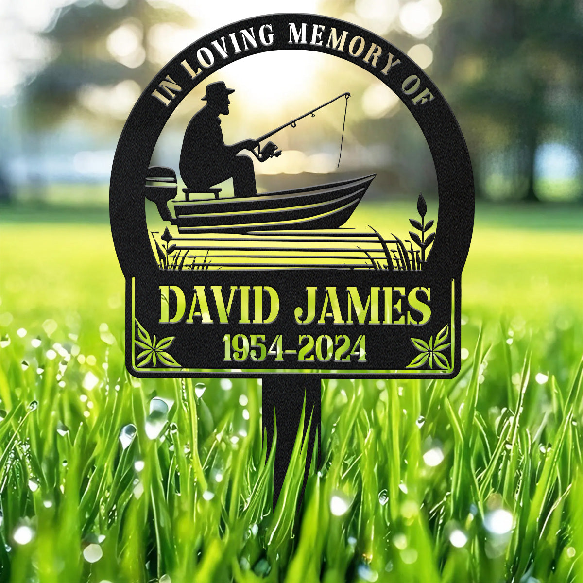 Fisherman Memorial, In Loving Memory Sign, Backlit Metal Sign, Decorative Garden Stakes, Garden Metal Art