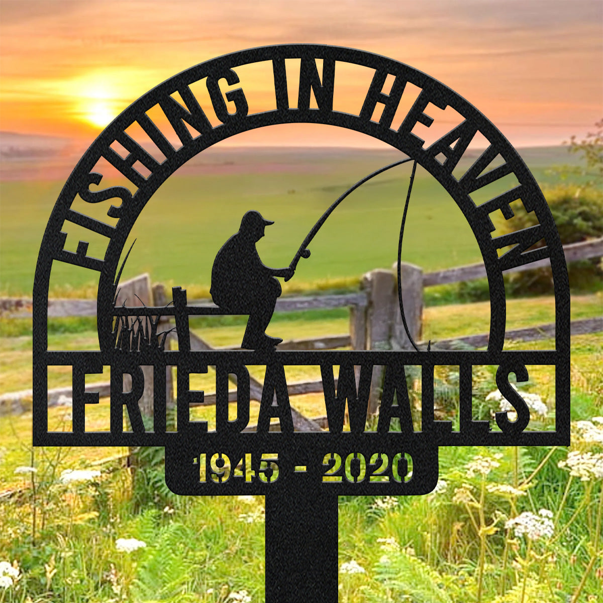 Fishing In Heaven, Remembrance Metal Stake, Metal Name Sign, Personalized Metal Signs