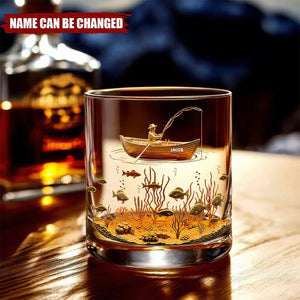 Fishing Man Personalized Whiskey Glass, Luxury Whiskey Glass For Fishing Lovers, Fisherman Gift