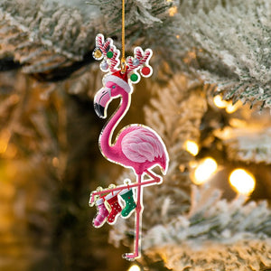 Flamingo Acrylic Christmas Ornament, Flamingo Christmas Decorations