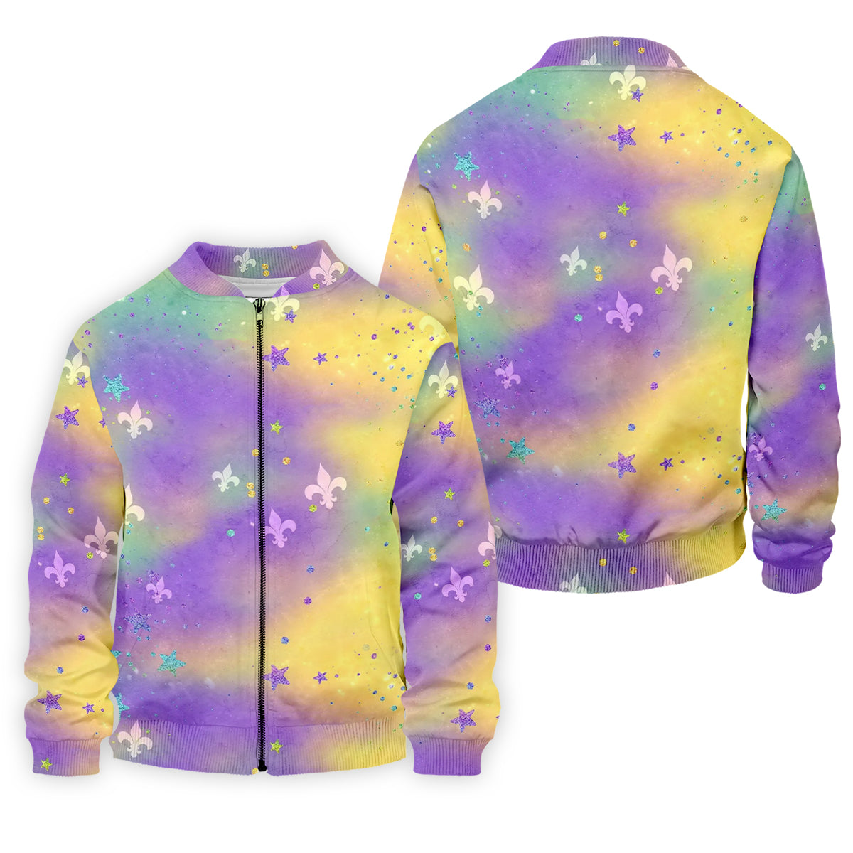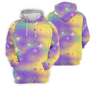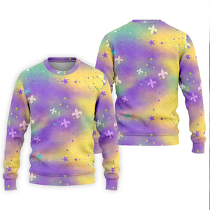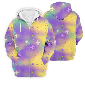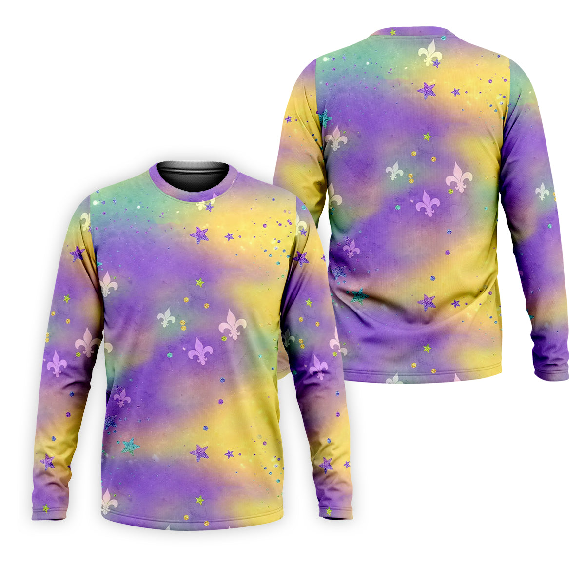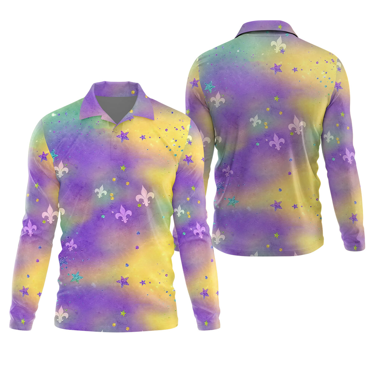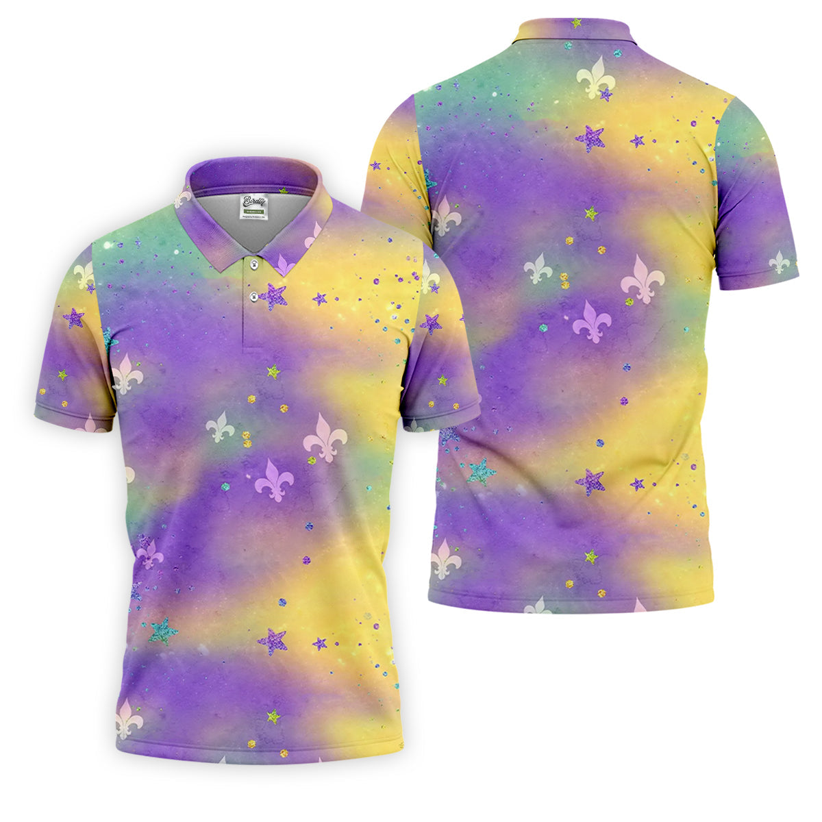 Fleur-De-Lis Symbol Green Gold Purple Blended Color Mardi Gras Golf Shirt, Golf Tops For Men, Polo For Men