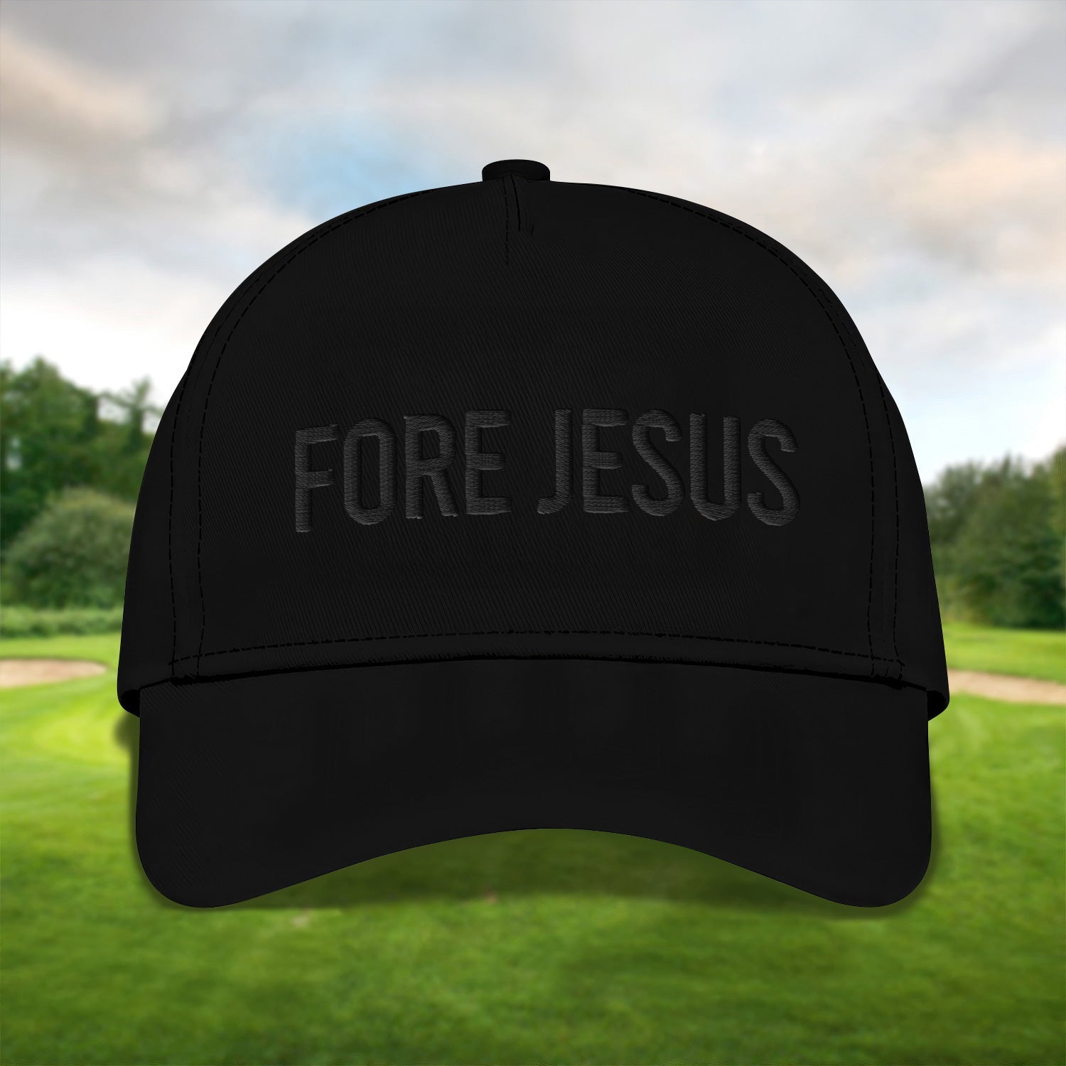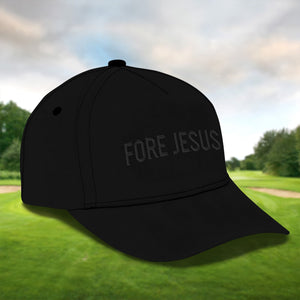 Fore Jesus Black Embroidered Baseball Cap, Funny Dad Hat