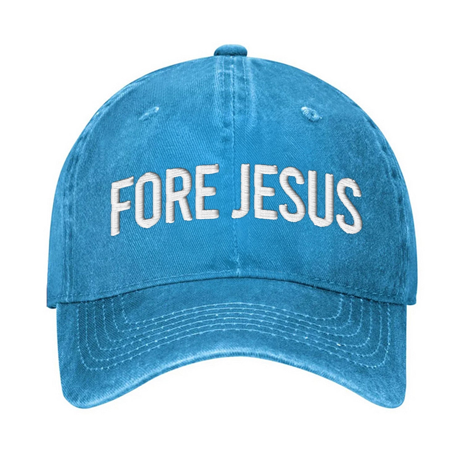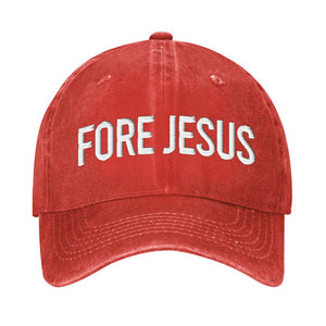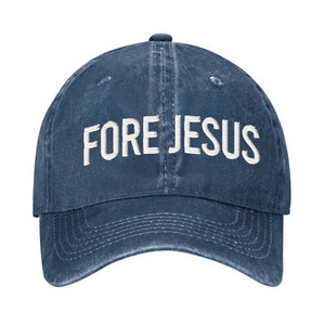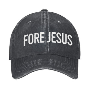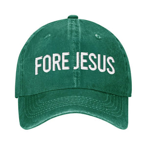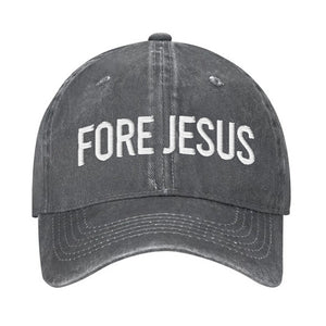 Fore Jesus White Embroidered Baseball Cap, Funny Dad Hat