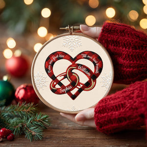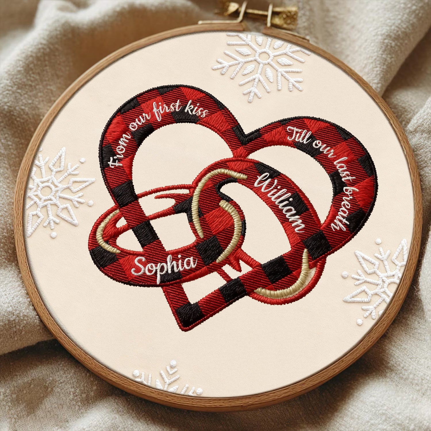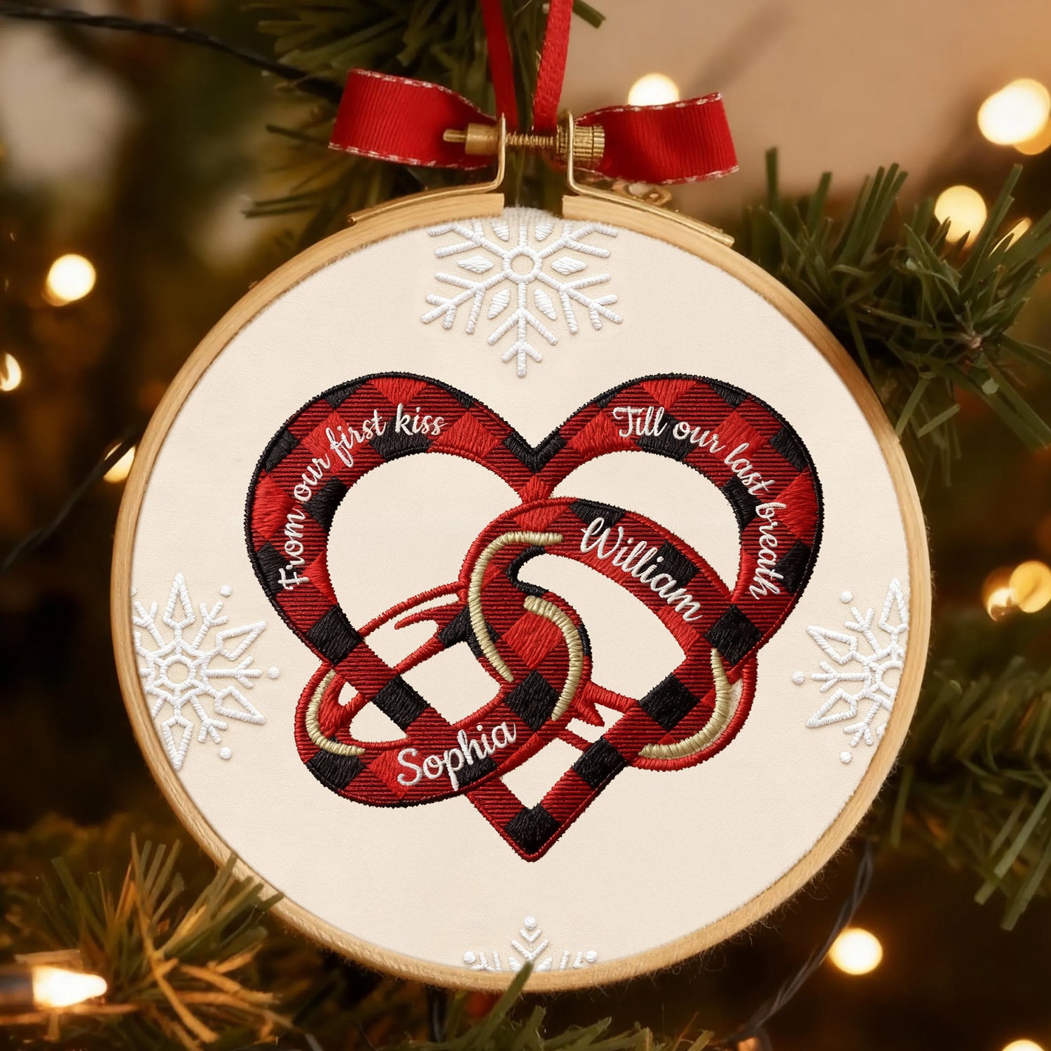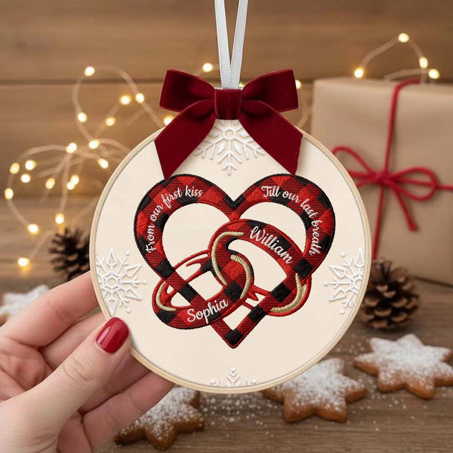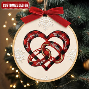 From Our First Kiss Embroidery Hoop Ornament, Heart and Wedding Rings Couple Ornament, Couple Christmas Gifts