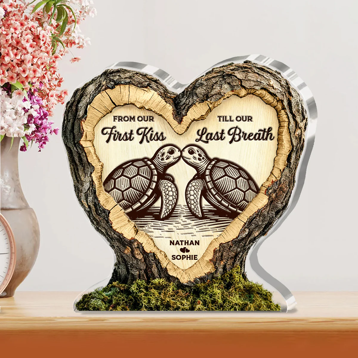From Our First Kiss Till Our Last Breath Turtle Couple Acrylic Plaque, Personalized Acrylic Plaque, Couple Valentine Gift