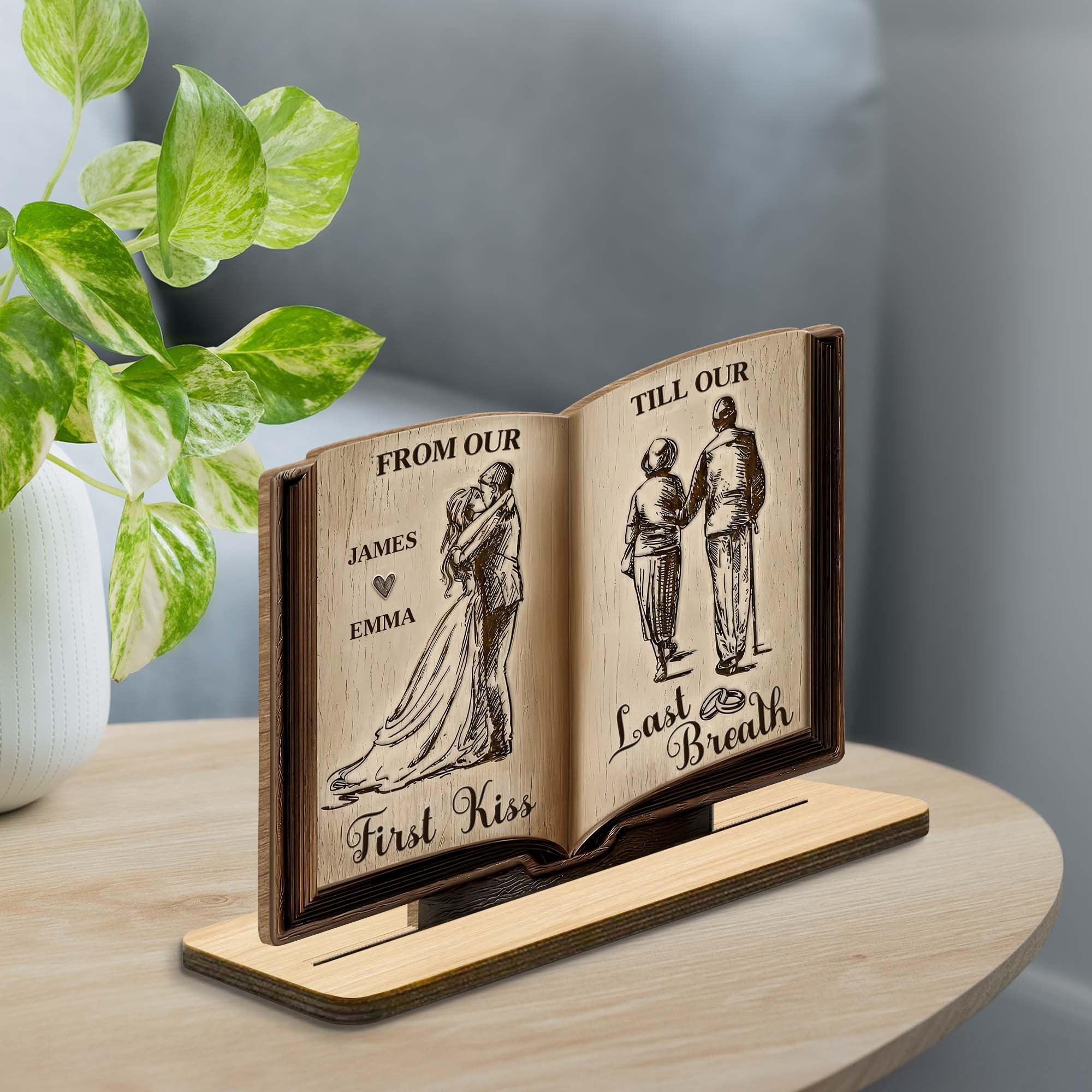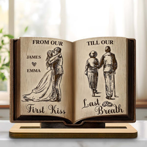 From Our First Kiss Till Our Last Breath Book Shape 2-Layer Wooden Plaque, Personalized Valentines Gift