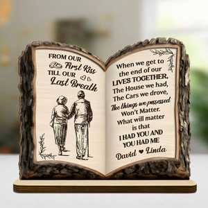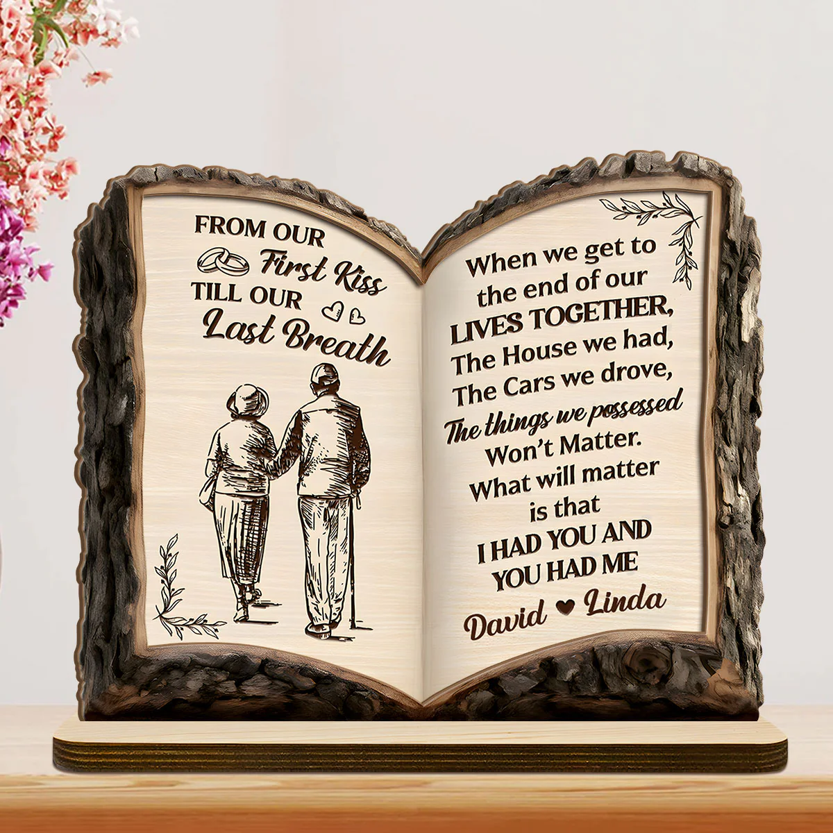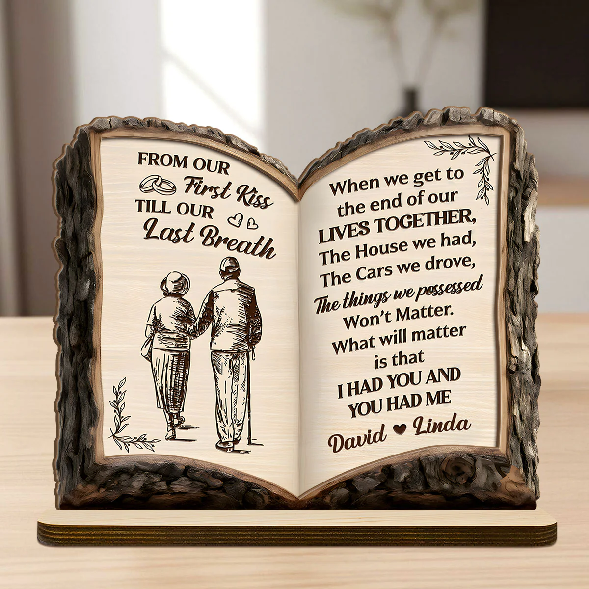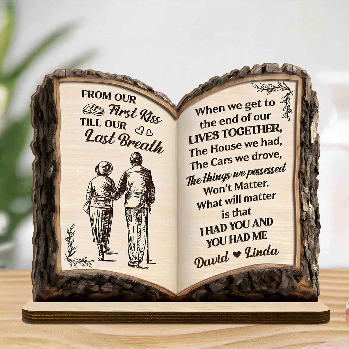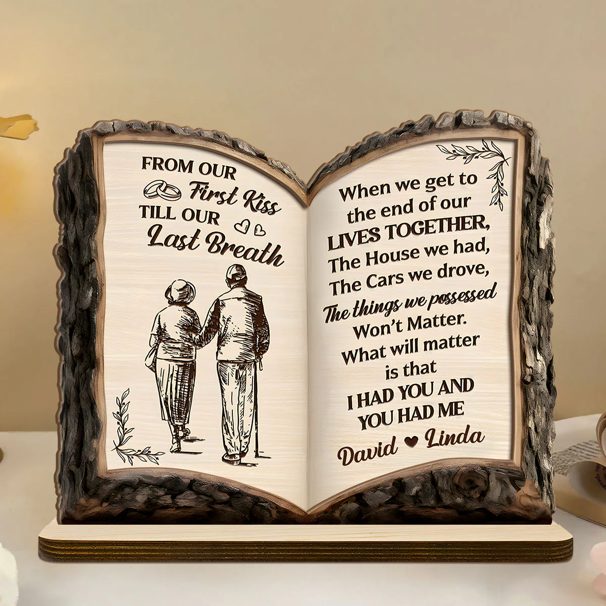 From Our First Kiss Till Our Last Breath Love Journey Book Shape 2-Layer Wooden Plaque, Personalized Valentines Gift