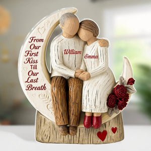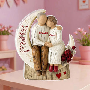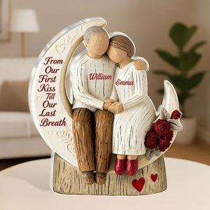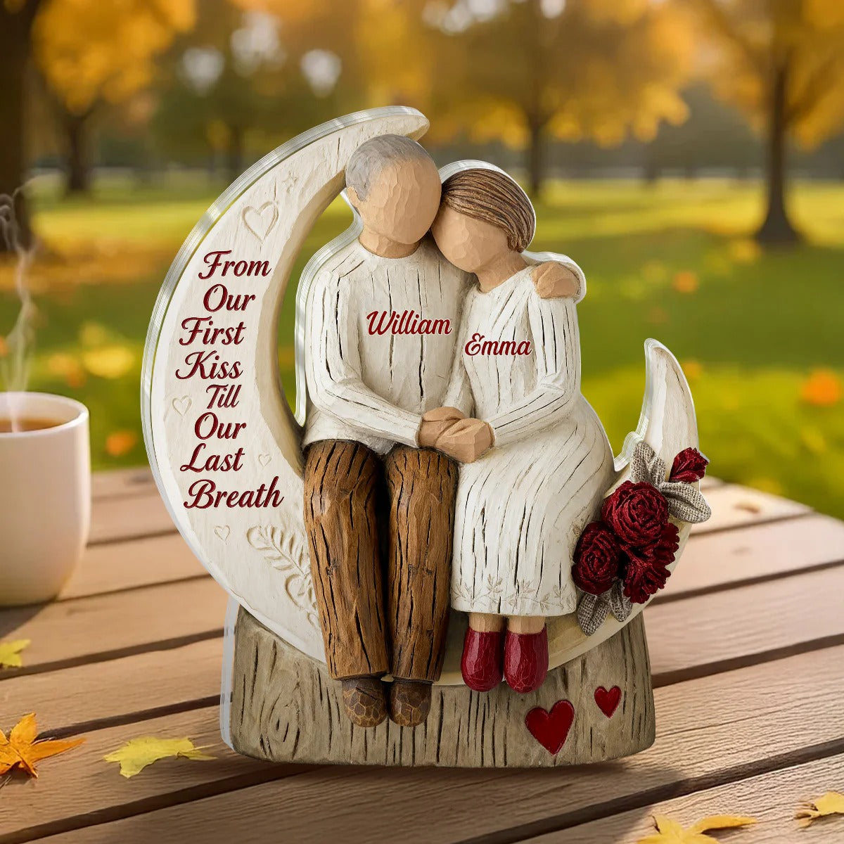 From Our First Kiss Till Our Last Breath Old Couple Moon And Rose Acrylic Plaque, Valentine Couple Gift