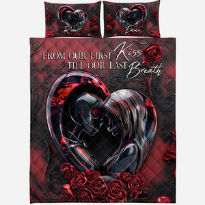 From Our First Kiss Till Our Last Breath Personalized Bed Set, Custom Name Quilt Set, Couple Anniversary Gift