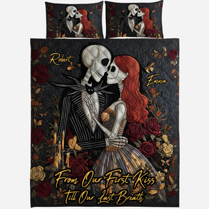 From Our First Kiss Till Our Last Breath Personalized Bed Set, King Size Bedroom Sets, Couple Anniversary Gift