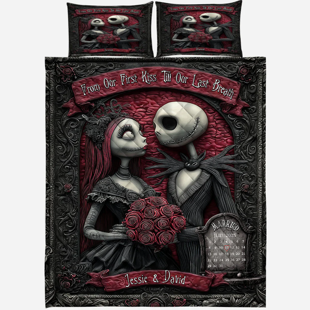 From Our First Kiss Till Our Last Breath Personalized Bed Set, Romantic Bedding Sets, Couple Anniversary Gift