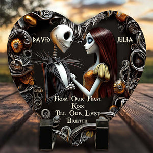 Celebrate your love story with this beautifully crafted Heart-Shaped Custom Stone, engraved with the touching phrase, "From Our First Kiss to Our Last Breath." This sentimental keepsake is the perfect way to honor your journey as a couple, making it an unforgettable gift for Valentine's Day, anniversaries, or any special occasion.