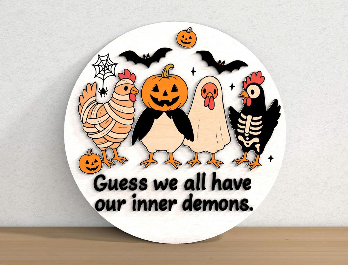 Bring the eerie spirit of Halloween into your home with our Funny Chicken Wood Signs Outdoor, Halloween Door Decoration Ideas. Each piece is meticulously crafted from premium wood, featuring 2-layer laser-cut designs that add depth and texture to your decor. Whether you're celebrating the spooky season or adding a year-round touch of fright, these signs are the perfect choice.