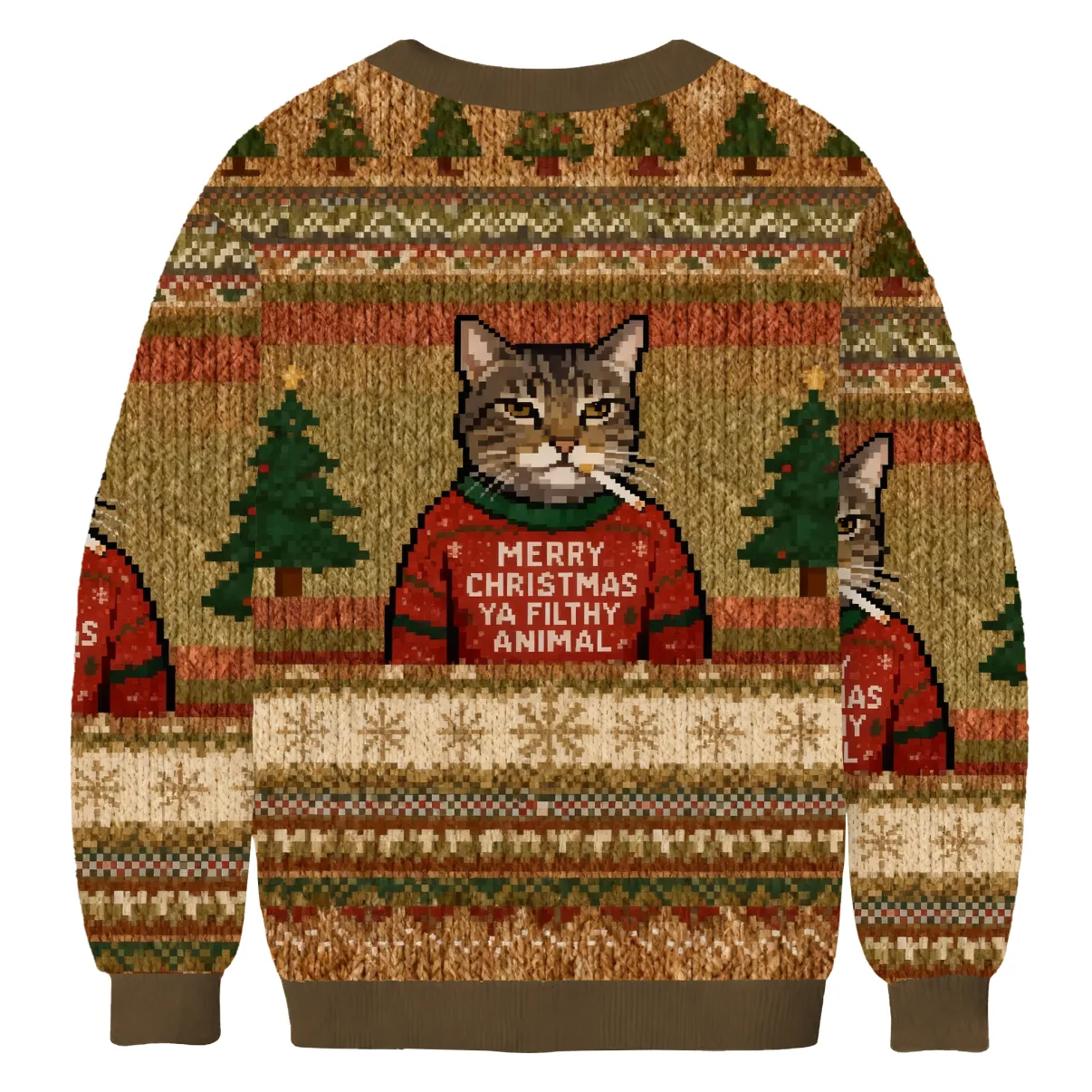 Funny Christmas Smoking Cat Funny Ugly Sweater, Ugly Xmas Sweater, Christmas Ugly Sweatshirt