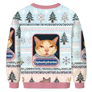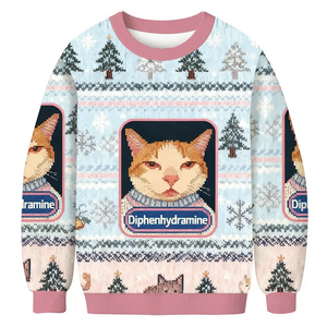 Funny Diphenhydramine Cat Meme Ugly Sweater, Gift For Cat Lovers, Christmas Ugly Sweatshirt